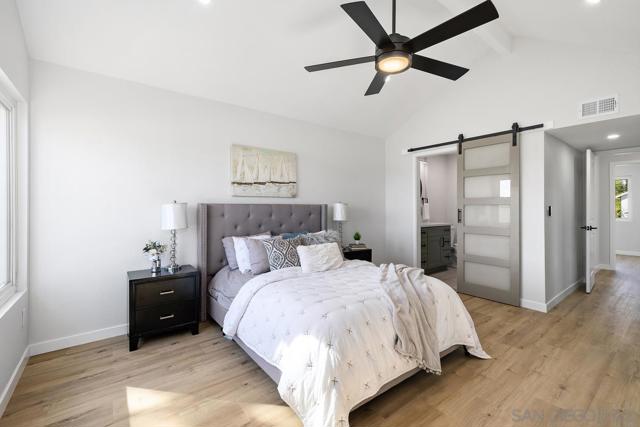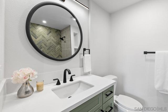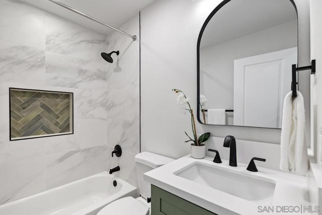 Welcome to this beautifully remodeled Tierrasanta home, perfectly situated local shopping, and easy access to the 15 freeway, making it simple to enjoy all that San Diego has to offer. This spacious 4-bedroom, 3-bathroom home features a highly desirable layout with a full bedroom and bathroom on the first floor—ideal for guests, multi-generational living, or a private home office. The home has been thoughtfully upgraded throughout, showcasing a stunning new kitchen with quartz countertops, stainless steel appliances, and a custom tile backsplash. Additional upgrades include new flooring, fresh interior paint, new baseboards, doors, and casings, along with modern LED lighting throughout. The living space is anchored by a beautifully finished fireplace with a custom plaster surround, while all bathrooms have been upgraded with designer tile and finishes. Major system improvements provide peace of mind, including a new roof, upgraded electrical panel, newer vinyl windows, and newer furnace and water heater. The backyard offers a great balance of indoor-outdoor living with an open layout, low-maintenance landscaping, and a Trex deck perfect for entertaining or relaxing. A rare 3-car rear carport with two private storage closets adds convenience and functionality. This turnkey Tierrasanta home combines quality upgrades, a flexible floor plan, and a prime location—an exceptional opportunity you won’t want to miss.