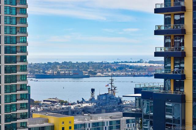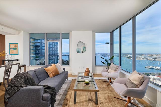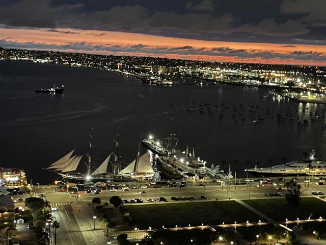 Welcome to elevated coastal living at this stunning northwest corner residence in Savina. Perched high above downtown, this unit showcases breathtaking panoramic views of the San Diego Bay, city skyline, and unforgettable sunsets from nearly every room. Almost floor-to-ceiling windows flood this condo with natural light while framing postcard-worthy scenery. The thoughtfully designed interior features a chef’s gourmet kitchen with premium finishes, ideal for both entertaining and everyday living. A rare , hard to come by and highly desirable floor plan in Savina building with very spacious but practical balcony, this condo boasts two oversized walk-in closets—an exceptional find in urban high-rise living—providing abundant storage and comfort. Perfectly positioned in one of downtown’s most coveted locations and neighborhoods, this residence seamlessly blends luxury, functionality, and iconic views, offering an unparalleled lifestyle above it all. Welcome to elevated coastal living at this stunning northwest corner residence in Savina. Perched high above downtown, this unit showcases breathtaking panoramic views of the San Diego Bay, city skyline, and unforgettable sunsets from nearly every room. Almost floor-to-ceiling windows flood this condo with natural light while framing postcard-worthy scenery. The thoughtfully designed interior features a chef’s gourmet kitchen with premium finishes, ideal for both entertaining and everyday living. A rare , hard to come by and highly desirable floor plan in Savina building with very spacious but practical balcony, this condo boasts two oversized walk-in closets—an exceptional find in urban high-rise living—providing abundant storage and comfort. Perfectly positioned in one of downtown’s most coveted locations and neighborhoods, this residence seamlessly blends luxury, functionality, and iconic views, offering an unparalleled lifestyle above it all.
