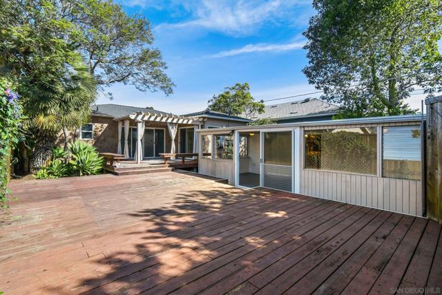 University Heights is a high-demand, character-rich neighborhood and 1037-1039 Johnson fits right in. A charming 1940’s Craftsman 2-bedroom, 2 bath cottage is the front half of the 2 on 1 property. Great deck for outdoor dining and entertaining and a unique bonus structure not included in the square footage. It contains laundry rooms for both houses & contains a patio room and an additional bathroom. The back portion of the lot features a one bedroom, 1 bath house with a generous carport and alley access. 1037 Johnson has a lovely street presence with gorgeous drought-resistant landscaping, a picture-perfect back deck ready for outdoor dining, coffee, or just enjoying a good book. That deck leads to an even larger deck perfect for fiestas. What do you call a pool house when there is no pool? I don’t know either so I’m just calling it a bonus structure. It does look like it would function perfectly as a pool house but, sincere there is no pool in sight, you can use it for an art studio, man cave, she-shed or whatever suits you. Perhaps it was originally built to house the laundry rooms for both the front and back houses and, at some point in time, an enclosed patio room was added. It is not included in the square footage in the tax records as it was added at some point in time without permits. There is a fence between the front and rear houses for privacy. The gate can be left open or closed off to separate the two homes. The front yard of the back house (1039 Johnson) is a lovely low-maintenance artificial grass surface centered around a beautiful oak tree. There is a concrete patio area as well. This property has access from the alley where it’s carport is located. 1037 and 1039 Johnson have separate SDG&E meters and they share one water meter.