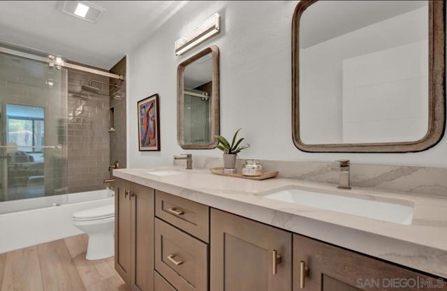 This beautifully upgraded UNFURNISHED residence at Marina Park showcases modern finishes and thoughtful enhancements designed for effortless city living. The home features updated flooring, recessed LED lighting, and a stylish, fully remodeled kitchen complete with quartz countertops, solid wood cabinetry, and stainless-steel appliances. Both bathrooms have been tastefully renovated with contemporary fixtures and sleek glass enclosures, creating a clean, spa-inspired retreat. The spacious open-concept living and dining area offers a cozy fireplace and expansive windows that fill the space with natural light, creating a warm and inviting atmosphere. Additional highlights include in-unit laundry, generous storage, and secure underground parking for added convenience. Residents enjoy access to resort-style amenities including a sparkling pool, relaxing spa, fitness center, and beautifully landscaped grounds that provide a tranquil escape from the city energy. Ideally situated in the Marina District of San Diego, the property is just steps from the waterfront, Seaport Village, top restaurants, boutique shopping, grocery stores, and public transportation. The exceptional walkability, combined with upscale upgrades and community amenities, makes this home highly attractive to professionals seeking comfort, convenience, and a vibrant downtown lifestyle.