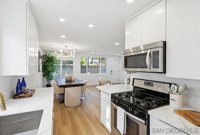 Welcome to this gorgeous, remodeled, move-in-ready 3-bedroom, 2-bath single-level condo located in the highly sought-after Baycrest community of coastal Point Loma — VA approved. Thoughtfully renovated with extensive recent improvements, the home offers a fresh, modern aesthetic with beautiful quartz countertops, updated cabinetry, stylishly remodeled bathrooms, new laminate flooring, and nearly all new dual-pane windows that fill the space with abundant natural light. A rare and valuable bonus is the PRIVATE in-unit washer and dryer, while spacious bedrooms and generous storage provide both comfort and functionality. Tucked within a quiet cul-de-sac setting, Baycrest offers a peaceful, low-traffic atmosphere along with access to two community pools. Enjoy TWO private patios perfect for relaxing, entertaining, or storing your coastal lifestyle essentials. Conveniently located near shopping, coffee shops, grocery stores, major freeways, the airport, and the waterfront, this home delivers the ideal blend of comfort, convenience, and true San Diego coastal living — a rare opportunity in one of Point Loma’s most private and desirable communities.