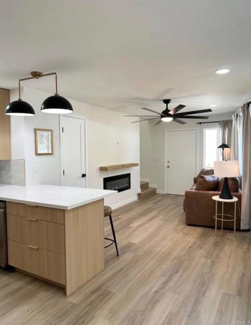 Welcome to turnkey living in the heart of Mission Valley, just a short walk to the University of San Diego. This completely reimagined two-story condo has been fully renovated from top to bottom and professionally designed for elevated, modern living. Everything is brand new. Nothing overlooked. Open-concept living with designer finishes. Chef’s kitchen with Brand-new LG smart appliance suite (refrigerator, electric cooktop/oven/air fryer, dishwasher) and European style cabinetry and quartz countertops. Expansive primary suite with dedicated office nook. Large master bath with Quartz countertops, tiled backsplash and European-style cabinetry. Upstairs laundry closet with new stackable washer/dryer. Recessed lighting, ceiling fans, and dual-pane windows. Smart keyless entry system. Contemporary electric fireplace 2-car enclosed garage. Ultra-walkable location near dining, retail, transit, and major freeways. Minutes to I-8, I-5, trolley access, and the vibrant energy surrounding USD. Whether you’re purchasing for yourself, your student, or as a strategic investment, this property checks every box: location, condition, and lifestyle.
