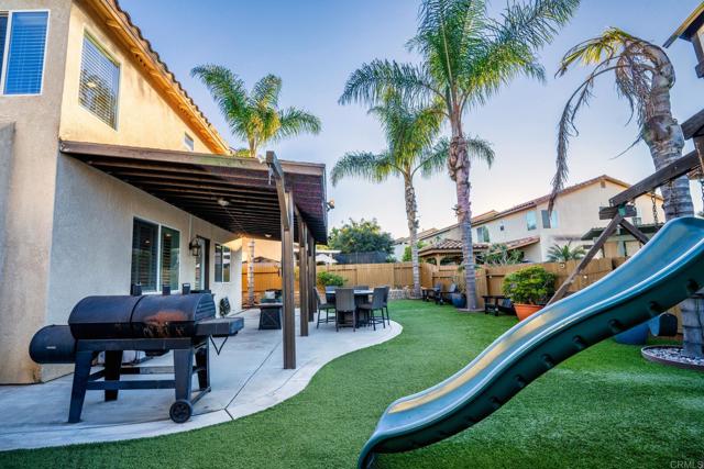 Welcome to 1230 Seahill Court, San Diego, CA 92154. A beautifully maintained newer construction home built in 2003, perfectly situated on a quiet cul de sac and thoughtfully designed for comfort, style, and everyday living. From the moment you arrive, the home’s exceptional curb appeal stands out, highlighted by mature palm trees and low maintenance artificial turf, creating a clean, polished, and inviting first impression. Step inside to find laminate wood flooring flowing throughout the downstairs and up the staircase, enhancing the home’s modern yet warm aesthetic. This spacious and versatile floor plan offers four bedrooms and two and a half bathrooms, thoughtfully arranged to meet the needs of today’s families. The main level includes a flexible bedroom without a closet that can easily serve as a home office, playroom, home theater, or private guest quarters, conveniently located near a half bath. Plenty of Space for a formal dining area and generous living spaces make entertaining effortless. The fully updated kitchen is truly the heart of the home, featuring modern cabinetry, sleek countertops, stainless steel appliances, crown molding, plantation shutters, a pantry, and a large center island ideal for entertaining with abundant prep space and storage, this chef inspired kitchen combines functionality with contemporary elegance and is perfect for hosting holidays, dinner parties, or everyday family meals. The living areas feel cozy and welcoming, filled with abundant natural light that pours in through well placed windows, creating a bright and airy atmosphere throughout the day. Ceiling fans add comfort and energy efficiency, while the open layout provides the perfect balance of connection and defined space for both relaxing evenings and lively gatherings. Upstairs offers the expansive master bedroom with a walk in closet, dual sinks, soaking tub, private bath, and separate stand up shower. The Two additional bedrooms offers a spacious layout and provides comfortable accommodations for children and extended family members, you will also have the comfort of a large Full hall bathroom and the convenience of an upstairs laundry room. Step outside to your private backyard oasis designed for year round enjoyment. A covered patio provides shade and privacy during warm summer days, creating the perfect setting for outdoor dining and relaxation. The low maintenance artificial turf, mature palm trees, and spacious layout offer plenty of room to entertain friends and family while providing a safe and comfortable space for kids and pets to play. Along the back of the yard, you’ll find a retaining wall that adds both structure and character, offering the perfect opportunity to create a beautiful garden with flowers, plants, or even a small vegetable garden for those who enjoy outdoor living and homegrown touches. The two car garage offers more than just parking and storage. With ample space and flexibility, there is room to create a home gym while still accommodating vehicles, making it ideal for buyers who value health, convenience, and maximizing every square foot of the property. With a functional layout, desirable location, and impressive indoor and outdoor living spaces, this home delivers an incredible amount of real estate for the money. From the ample interior square footage to the thoughtfully designed backyard, buyers will immediately recognize the value, pride of ownership, and opportunity this property offers. If you are looking for space, upgrades, comfort, and lifestyle all in one, this is the home that checks every box. Homes with this combination of features, condition, and value do not last long. Come see it in person and get ready to make it yours.