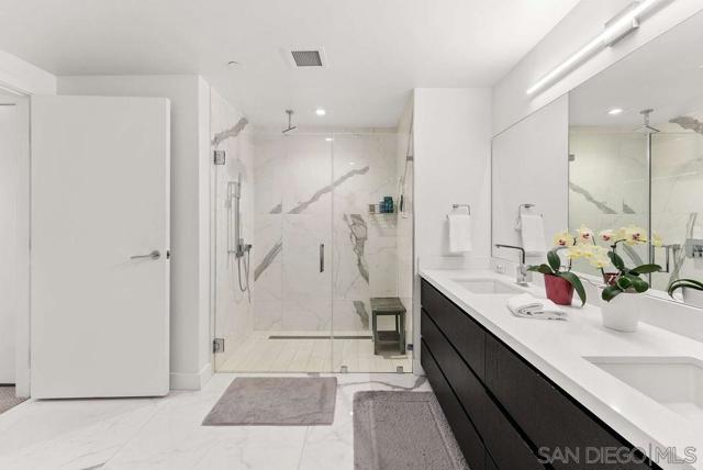 Welcome to Savina, Downtown San Diego’s premier luxury high-rise perfectly positioned between the sparkling waterfront and the vibrant charm of Little Italy. This west-facing 2-bedroom, 2-bath residence showcases sweeping bay and city views from every room, creating a stunning backdrop of sunsets and shimmering evening lights. The open-concept design features a chef’s kitchen with white quartz countertops, a generous island, premium Thermador appliances, and custom cabinetry, flowing seamlessly into the living and dining areas and out to a private balcony with panoramic bay and skyline views. The spacious primary suite offers a large walk-in closet and spa-inspired bath, while both bedrooms enjoy beautiful water views. This residence includes two tandem parking spaces and a private storage room. Savina offers a true 5-star resort lifestyle with a pool and spa terrace, state-of-the-art fitness center with yoga deck, steam and sauna rooms, resident lounge, outdoor BBQ areas, pet retreat, conference room, and 24-hour concierge service.