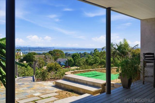 Spectacular panoramic bay views from this fully furnished La Jolla beauty! Perched on the hill above Kate Sessions park, this ultramodern and chic, 2 BR / 1 BA retreat has everything you want. Quartz countertops & high gloss European style cabinetry adorn the large kitchen which is open to the living space and oversized sliding doors. Plenty of storage w/ stainless steel appliances, dishwasher & gas range. In unit washer and dryer, 3 zone mini-split for heat & AC, backyard deck, bar & built in BBQ. All utilities included. Short term rental OK (1 month minimum). Did I mention the views?