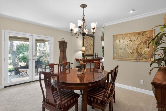 Kensington Park Villas! Beautifully appointed Plan F, the largest floor plan in the complex with three bedrooms and two and one half baths. A few steps down to the main living area with a light filled living room with its wall of windows and fireplace. The formal dining room is unique to this floor plan and is quite spacious! An eat in kitchen with breakfast nook and significant cabinetry and counters, not to mention a large pantry rounds out the ground floor. Next level is for the two guest bedrooms and full bath and then up just a few more steps is the very spacious primary bedroom suite with full bath. A very popular layout! Two patio areas, one off the primary suite which is extra roomy and looks out to the front of the unit. The ground level patio is also quite large and overlooks two of the several ponds and fountains in the center of the complex. A walking path near but not intrusive to this unit! Tranquil is the key word, inside and out! Attached two car garage w/laundry facility.