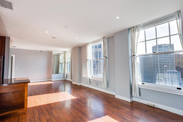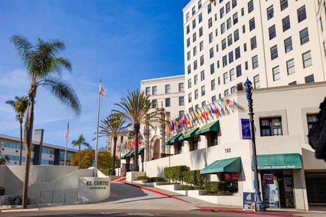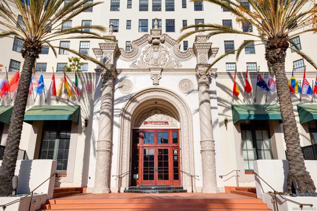 Experience the charm and grandeur of San Diego's historic El Cortez building, a true icon in the heart of the city! This exquisite 2-bedroom, 2-bathroom condo beautifully marries timeless architectural elegance with modern living, offering a rare opportunity to own a piece of local history. The spacious interiors are bathed in natural light, while the expansive windows frame breathtaking views of the city skyline, creating the perfect backdrop for daily life. With a seamless blend of old-world charm and contemporary upgrades, this home offers the best of both worlds. The condo is set in the coveted Cortez Hill neighborhood, renowned for its scenic hillside setting and vibrant urban lifestyle. Enjoy exclusive amenities, including a state-of-the-art fitness facility, an outdoor pool, and a beautifully landscaped courtyard overlooking the city, complete with tables, chairs, and BBQ for outdoor entertaining. Perfectly positioned, you'll be just minutes from the energy of Little Italy, the nightlife of the Gaslamp Quarter, and the cultural richness of Balboa Park. Don't miss your chance to call this historic gem your home!