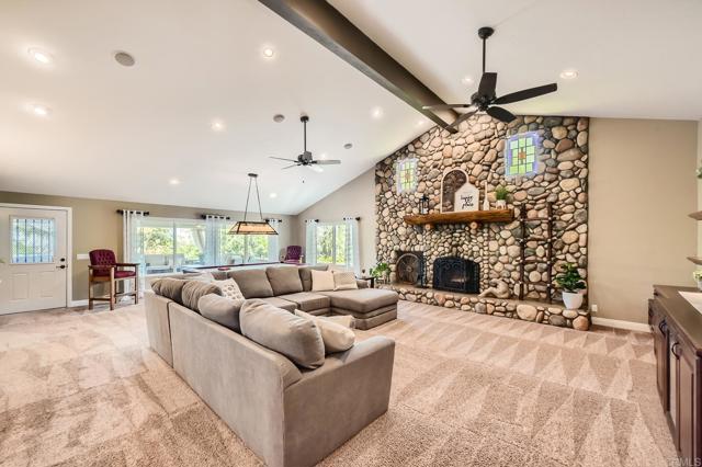 Set on a spacious 1.1-acre lot in Alpine, CA, this 3-bedroom, 2-bath home offers the perfect blend of privacy, outdoor living, and space for all your toys. With mountain views, wide open skies, and room to entertain, this property captures the relaxed lifestyle Alpine is known for. The standout feature is the expansive outdoor entertaining area. An oversized covered patio (approx. 38’ x 23’) features a built-in BBQ island, creating the perfect setup for weekend gatherings, sunset dinners, and enjoying the peaceful mountain setting. Inside, the home offers a comfortable and functional floor plan with a spacious family room and a well-equipped kitchen featuring a double oven and generous counter space, ideal for hosting holidays or everyday cooking. The property truly shines for buyers needing extra storage, RV parking, or workshop space. An oversized RV garage plus a dedicated RV pad provides exceptional flexibility for RVs, boats, trailers, off-road vehicles, or hobby space. Includes a 50amp RV outlet. Situated on 1.1 usable acres, the property offers privacy and room to expand, while still being conveniently located near Alpine’s local shops, restaurants, and community events, with easy access to Interstate 8 for commuting to San Diego. A rare opportunity to enjoy country space, mountain views, and RV-friendly living in Alpine.