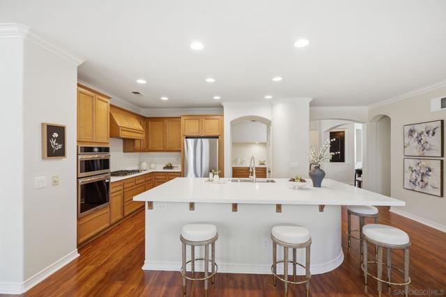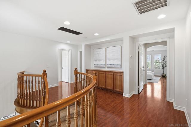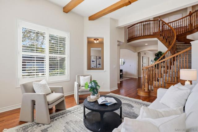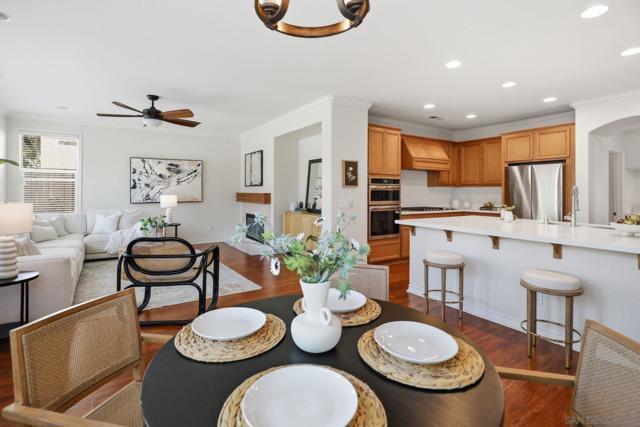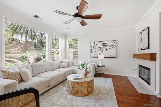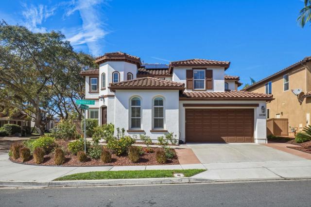Perched on a prime corner lot in desirable Torrey Highlands, this home features over 3,400 square feet of thoughtfully designed living space. Perfect for multigenerational living or ultimate privacy, you'll enjoy 5 bedrooms, 3 of which have ensuite baths, including one on the main living level. Freshly painted inside & out, you'll notice the care put into this home, from the lovely roses out front, to the backyard w/fruit trees, & everything between. The oversized kitchen is a true centerpiece, featuring brand-new quartz countertops & backsplash, and updated appliances. With ample space for cooking and entertaining, it’s perfect for hosting gatherings or enjoying quiet family meals. You'll notice how it opens to a generously sized family room & eating area, for true connection. Stay cozy by the fireplace or step outside to the expansive corner lot, ideal for gardening, relaxing in the sun, or hosting barbecues. Upstairs, the primary suite is a luxurious retreat, with a large seating area, two walk-in closets, and an ensuite bath featuring two vanities & a large soaking tub. The 3-car garage provides abundant storage for vehicles and hobbies, while owned solar panels enhance energy efficiency and sustainability. Located just minutes from vibrant shops, top-rated restaurants, and the beautiful Del Mar Beach, with easy access to the 56, 5, and 15 freeways, this home offers the best of coastal living. Plus the elem, middle, & high schools are within walking distance & in Poway Unified. Packed with updates and thoughtful details, it’s ready to welcome you to your next chapter.