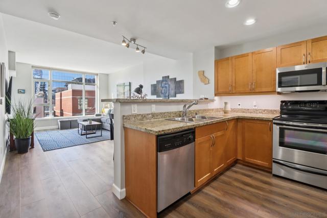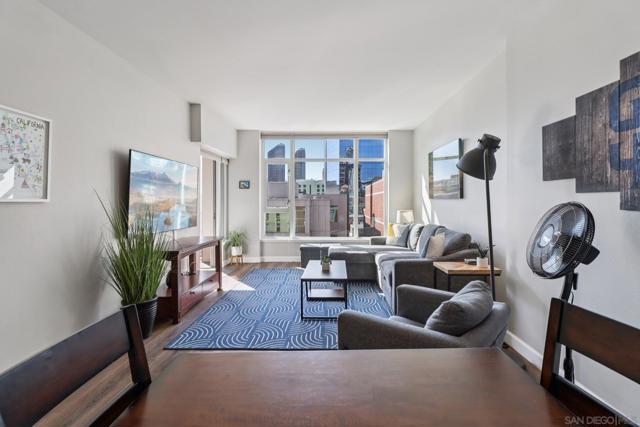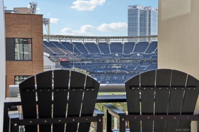 Step into a bright and inviting 1-bed, 1-bath condo in Diamond Terrace, one of East Village’s most vibrant addresses. Floor-to-ceiling windows fill the home with natural light and frame views of the city, while the private balcony overlooks Petco Park, offering a front-row seat to the energy of the ballpark. Imagine enjoying morning coffee above the neighborhood or unwinding in the evening as the stadium lights glow and the sounds of the city drift below. Inside, the open living space flows into a kitchen with stone countertops and stainless steel appliances, with in-unit laundry and central air adding everyday comfort and convenience. Enjoy a spacious primary suite with access to the oversized bath from both the bedroom and living area. Diamond Terrace rises 14 stories with 113 residences and offers a secure lobby, underground parking, a fitness center, and a top-floor community room with an outdoor terrace and BBQ area, perfect for relaxing or gathering with friends while taking in sweeping views of the skyline. Located just steps from Petco Park, Gallagher Square, the Gaslamp Quarter, and countless restaurants, cafes, and nightlife options, this home places you in the heart of downtown San Diego. More than just a condo, it offers a lifestyle where ballgames, concerts, dining, and city life are all part of the everyday experience.