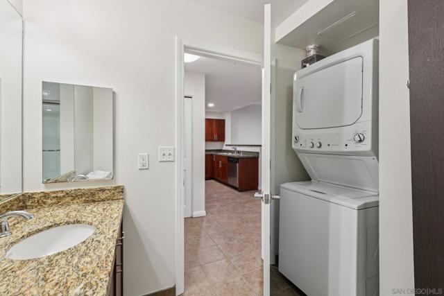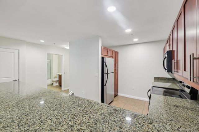 Experience the vibrant energy of East Village in this spacious 1-bedroom, 1-bath residence just steps from Petco Park, top dining, nightlife, and the scenic waterfront. The open living, dining, and kitchen layout is perfect for entertaining, flowing seamlessly to a large covered balcony with tranquil treetop views—ideal for morning coffee or evening unwinding. The chef-inspired kitchen boasts granite counters, abundant cabinetry, breakfast bar seating, and stainless steel appliances. Retreat to the king-sized bedroom, complemented by a roomy bath and excellent storage. Added conveniences include in-unit laundry, and secure parking. Residents enjoy premium amenities such as a BBQ deck, fitness center, and community room. With easy access to the Gaslamp Quarter, Seaport Village, Little Italy, and nearby beaches, plus close proximity to the trolley, train, and airport, this home offers the ultimate in urban living and convenience.