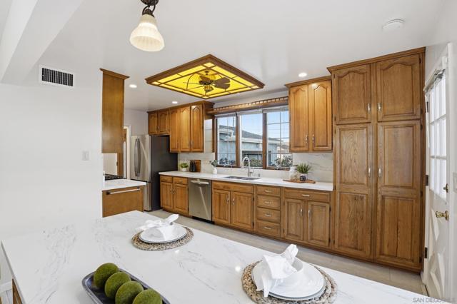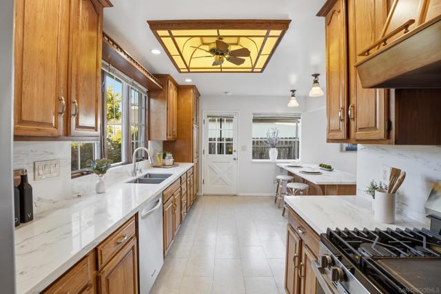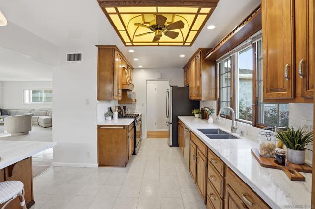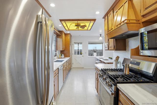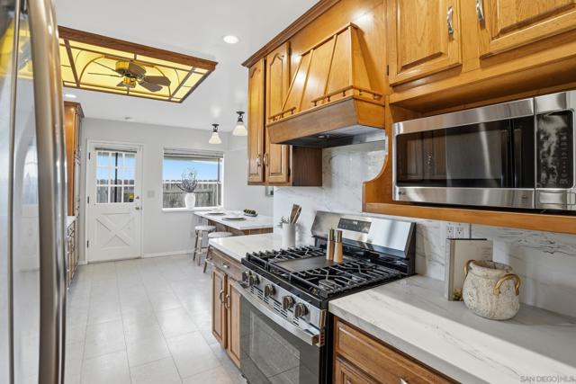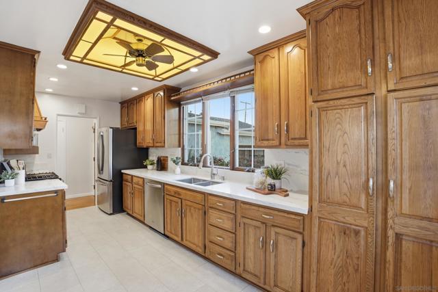 Welcome to this bright and inviting 3-bedroom, 2-bath home located on a quiet street in desirable Serra Mesa. The home features a spacious living room with a wonderful gas fireplace, creating a warm and comfortable space to relax or entertain. The kitchen is designed for easy everyday use and opens nicely to the main living areas. All three bedrooms are well-sized, and the bathrooms are spacious and functional. Large windows throughout the home bring in plenty of natural light, giving the interior an open and airy feel. Outside, you'll find a charming yard with a great storage shed in the back—perfect for tools, hobbies, or additional storage. The property also includes a 2-car garage and a Tesla EV charger. A comfortable and well-located home in one of Del Cerro’s most peaceful neighborhoods.