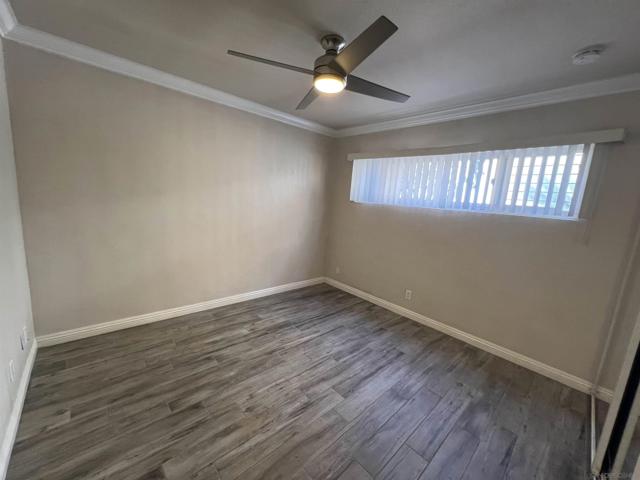Gorgeous 2-bedroom, 1-bath ground-level end-unit condo in the heart of Pacific Beach — perfect as a primary residence, beach retreat, or income-producing investment. Bright and airy with windows on three sides, this light-filled home offers privacy, natural cross-breezes, and that effortless coastal feel. Move-in ready and meticulously maintained, the interior features beautiful porcelain tile-plank flooring, granite kitchen countertops, a newer dishwasher, recessed lighting, crown molding, pine wood baseboards, and newer dual-pane vinyl windows. The bathroom adds a fresh, modern touch, while the hardwood front door with keyless entry provides both style and convenience. Set within a charming 12-unit gated complex with lush tropical landscaping, this home offers a peaceful escape just moments from the energy of Pacific Beach. Walk three blocks to Trader Joe’s, stroll to Kate Sessions Park for sunset views, or bike to the beach for morning surf sessions. Enjoy easy access to PB’s vibrant shops, cafés, restaurants, and nightlife — all while returning home to your own quiet, secure retreat. Low HOA dues include water and trash. Convenient shared laundry facilities located on the property. One assigned parking space included. Experience the best of coastal living — where convenience, charm, and lifestyle come together.