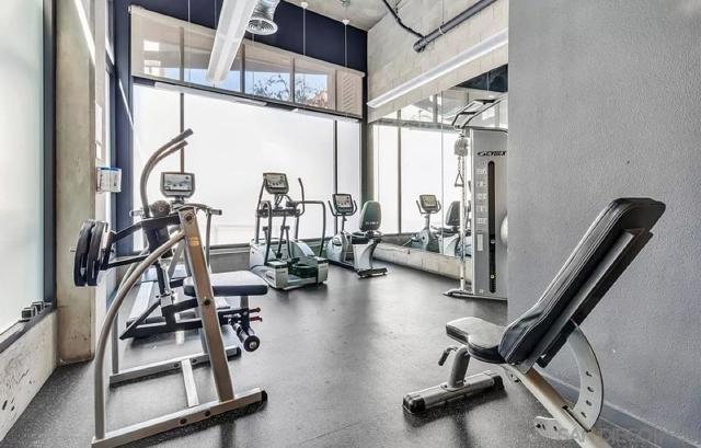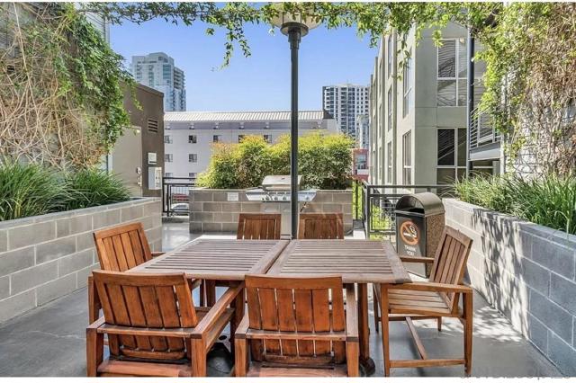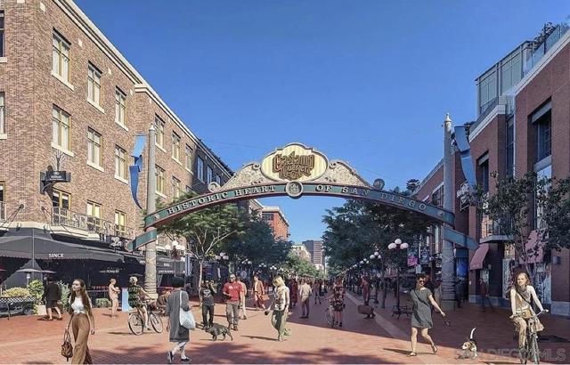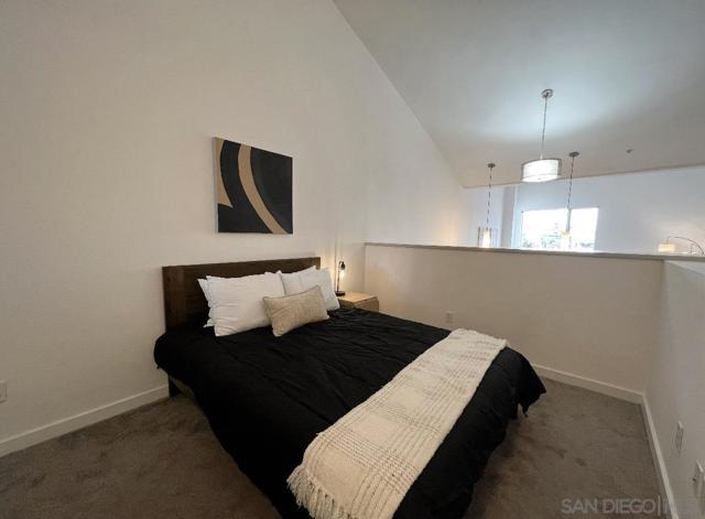 TOP-FLOOR GASLAMP LOFT - LIVE IT OR RENT IT! Extensively upgraded 746 sqft platform loft with excellent mid-term rental income potential in Downtown San Diego's most walkable neighborhood. This sun-drenched urban retreat features soaring 15-ft vaulted ceilings, industrial-exposed ducting, and meticulous designer upgrades including: NEW luxury vinyl flooring throughout, fresh contemporary paint, completely renovated kitchen with show-stopping waterfall-edge island countertops, new stainless sinks and modern fixtures, custom oversized closet, in-unit washer/dryer (2024), and brand NEW AC unit (2024) for optimal comfort and efficiency. The open living space flows seamlessly while the loft-style bedroom offers privacy with pony-walls - a layout renters and residents love. One assigned space in secure underground garage included. Building amenities: fitness center and outdoor BBQ/entertainment area with recent common area enhancements (2023). LOCATION IS EVERYTHING - walk to Petco Park, new Gaslamp Promenade, harbor, 100+ restaurants/bars, trolley access, and endless entertainment. Pet-friendly building welcomes your furry friends. VA APPROVED for qualified buyers. Perfect for investors seeking rental income (30+ day minimum rentals allowed), urban professionals wanting the ultimate downtown lifestyle, traveling professionals needing flexible housing, or owner-occupants who want the option to rent when away. This is your chance to own in San Diego's premier entertainment district with flexibility to occupy or generate income. HOA $652/mo. Priced to move.