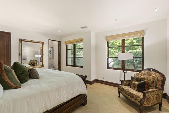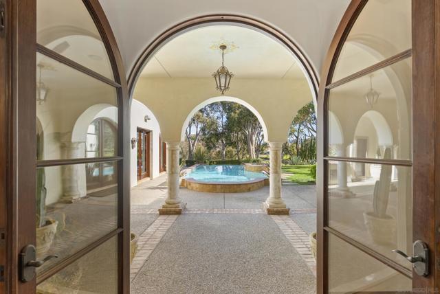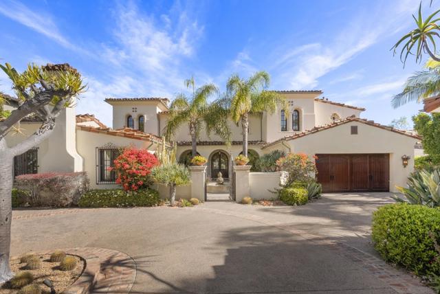 Value Range $4,795,000-$4,995,000. NEWLY painted and refreshed. Feel like you're on a permanent vacation in this stunning custom estate located in the guard gated community of The Crosby at Rancho Santa Fe. Tucked away at the end of a quiet cul-de-sac on one of the community's most coveted flat lots, this home offers breathtaking panoramic views of the golf course. One of the very few homes with a private gated path providing direct access to the fairway. A long, secluded driveway welcomes you with a charming fountain, setting the tone for the elegance within. Inside, you'll find exquisite custom woodwork and ultra-high-end finishes throughout. The main living spaces open to spectacular views through expansive glass doors behind the family and dining rooms, blending indoor and outdoor living effortlessly. Cozy up by one of the oversized fireplaces, or entertain in style with a gourmet chef’s kitchen featuring top-of-the-line stainless steel appliances and an adjacent informal dining area. The main level also includes a generous ensuite bedroom and an impressive office that opens onto a tranquil courtyard. Upstairs, the luxurious primary retreat boasts its own private balcony with sweeping views of the entire property and golf course. An additional ensuite bedroom and a versatile loft complete the upper level. The backyard is an entertainer's paradise, showcasing a stunning architecturally designed pool that perfectly frames the custom home beyond. A separate guest house with a full bath offers comfort and privacy for visitors. To top it all off, there are two 2-car garages. Conveniently located near shopping and restaurants.