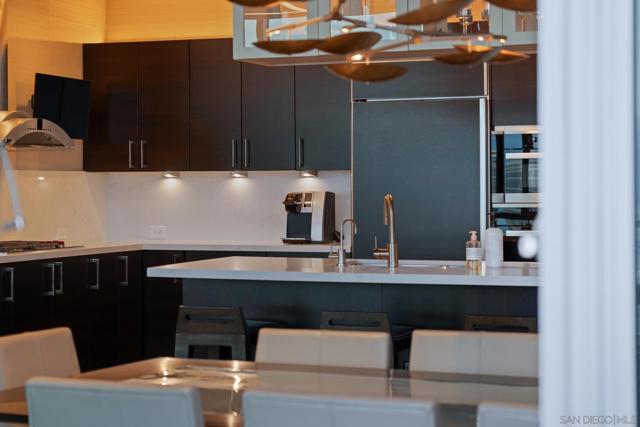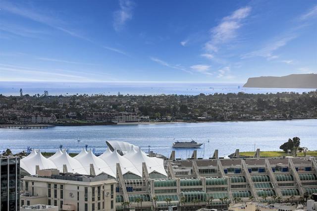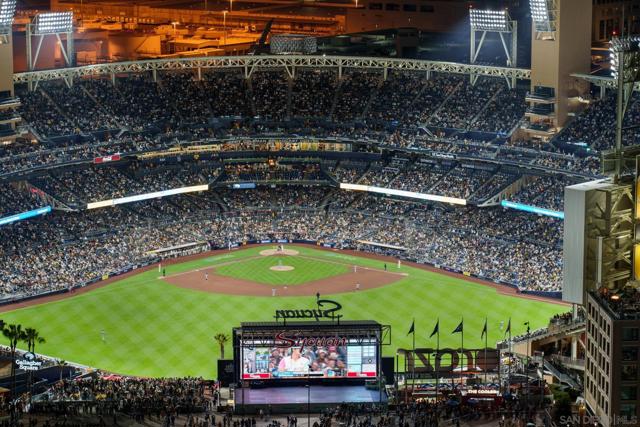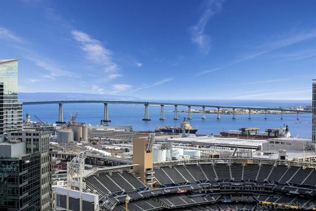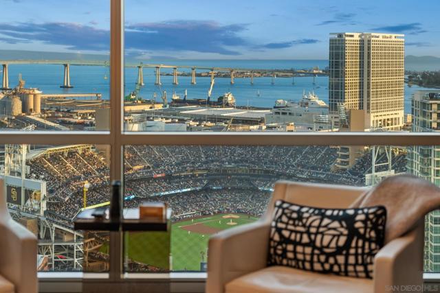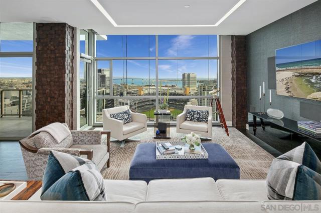 Perched on the 28th floor of The Mark, this exceptional semi-penthouse offers expansive city living with approximately 2,430 square feet & three spacious bedrooms, two en-suite. From this elevated vantage point, enjoy unparalleled panoramic views of the downtown skyline, San Diego Bay, the graceful arc of the Coronado Bridge, and the iconic silhouette of Point Loma. At the center of it all is the vibrant energy of Petco Park, home of the San Diego Padres—offering a front-row perspective to games, concerts, and the dynamic atmosphere of East Village.This semi-penthouse sanctuary in the sky features one of the largest outdoor living spaces in the building, highlighted by an expansive 400+ square foot terrace—an urban oasis ideal for entertaining guests or cultivating a lush garden retreat. Two additional private balconies extend the indoor-outdoor lifestyle, located off the dining area and the primary suite. Inside, ten-foot ceilings enhance the sense of scale and sophistication, while floor-to-ceiling glass windows flood the residence with natural light and showcase the remarkable views from nearly every room. The thoughtfully designed floor plan includes: • 2 ensuite bedrooms for privacy and comfort • Generous closet space throughout • A walk-in pantry • An elegant wine bar perfect for entertaining • Designer lighting fixtures that add warmth and sophistication From catching a Padres game from above, to enjoying concerts and city lights, or simply savoring the beauty of the bay, this 28th-floor semi-penthouse at The Mark offers a truly elevated San Diego lifestyle.