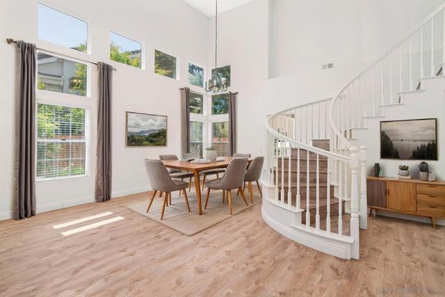 Gorgeous 2-story gem in coveted Carmel Mountain Ranch; Curb appeal low maintenance front yard; Dramatic high ceiling in the living and dining area as you enters the front door making is bright & airy; Majestic circular staircase; Luxury plank & tile floorings; Granite counter-top kitchen with built in double oven & gas cooktop; 2 fireplaces - one in the family room and another in the master bedroom above; Walk in pantry; Walk in closet in Master bedroom; Pavers in backyard backing to the green slope are perfect for entertaining; Close to amenities, banks, library, schools, post office, Costco, banks, library, schools, post office, Costco, Home Depot, banks, parks; Easy access to freeways.