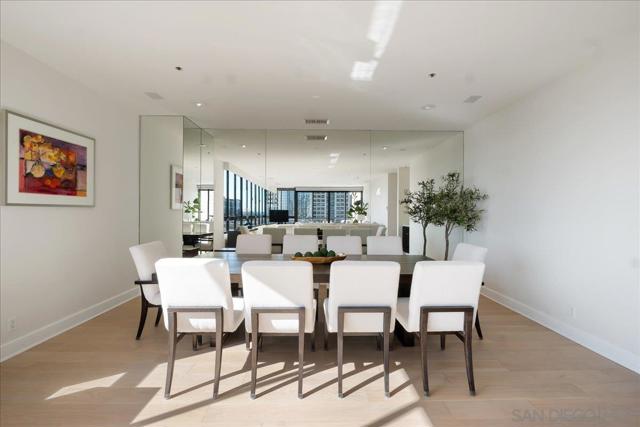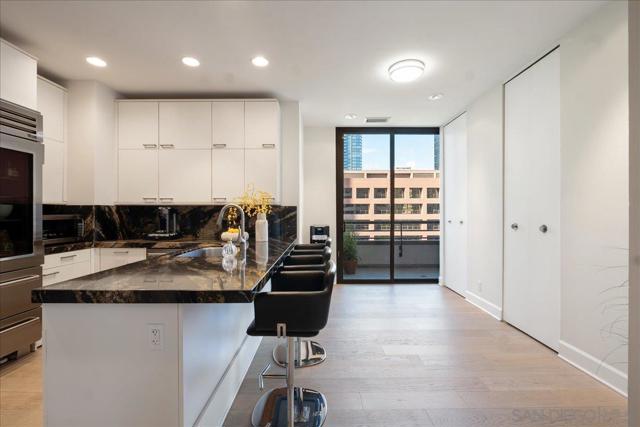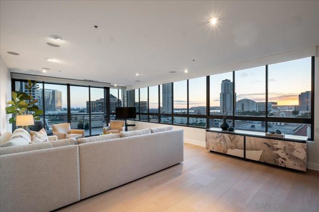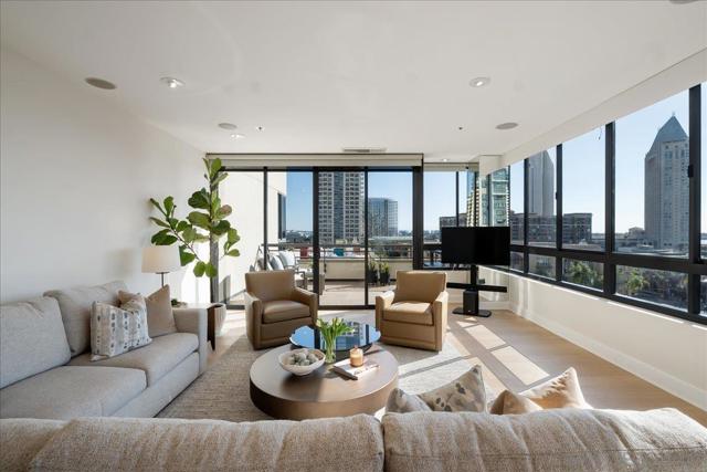 Experience true full-service luxury living at the iconic Meridian in San Diego’s Marina District. This beautifully positioned property offers one of the building’s most desirable layouts with southwest exposure, filling the home with natural light while capturing city and bay views. Expansive windows wrap the main living areas, creating a bright and open atmosphere that seamlessly connects indoor living with the spacious private terrace—perfect for enjoying San Diego sunsets and coastal breezes. Life at The Meridian offers a truly elevated full-service lifestyle with 24-hour concierge, doorman, valet parking, porter service, on-site management, and security. Residents enjoy resort-style amenities including a heated pool, spa, fire-pit lounge areas, cabanas, BBQ areas, and a beautifully landscaped outdoor plaza spanning over half an acre. The building also features two fully equipped 24-hour fitness centers with saunas and steam rooms, Peloton bikes, guest suites, conference and entertainment rooms, and a wide range of resident services and social events. Perfectly located, you are just moments from the waterfront, Seaport Village, Little Italy, world-class dining, shopping, and San Diego’s vibrant cultural and entertainment scene. Meridian is known for its exceptional construction, including approximately 32 inches between floors—a rare feature providing superior sound insulation and privacy. This is more than a residence — it’s a lifestyle of service, luxury, and effortless downtown living in one of San Diego’s most distinguished high-rise communities. More than a residence — it’s a lifestyle. PLEASE REFER TO THE ATTACHED DOCUMENTS FOR IMPORTANT INFORMATION REGARDING UNIT #605 AND THE MERIDIAN COMMUNITY. The lobby is currently undergoing a full renovation and is expected to be completed by the end of March or early April.