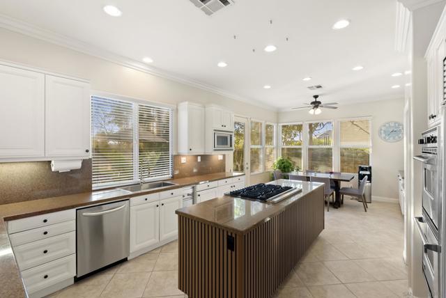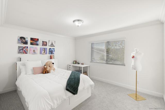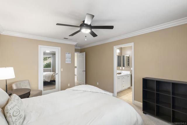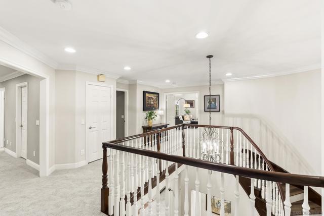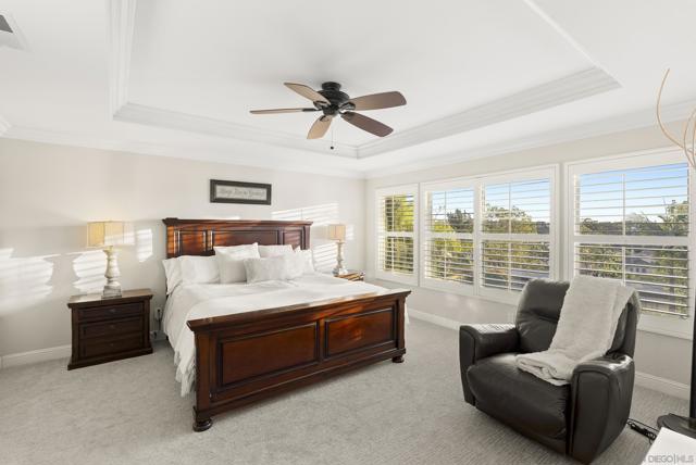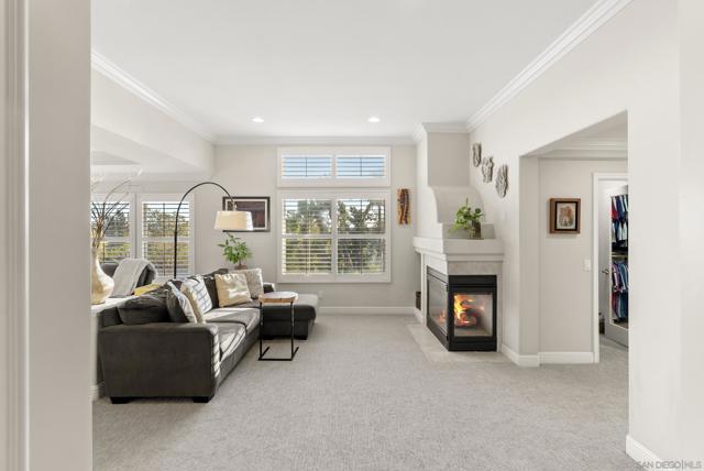 Perched above the Grand Del Mar, this 4,687-square-foot Lexington estate offers 7 bedrooms and 5 full baths of sophisticated living. The home greets you with soaring ceilings and abundant natural light. The formal entry leads to impressive formal living and dining spaces. A true chef’s kitchen with an island and dining area adjoins the inviting family room and flows effortlessly to the outdoor oasis. The rare main-level layout includes a full bedroom and bath, plus a dedicated office with its own full bath, perfect for guests. A grand staircase leads to a formal upstairs landing and a massive primary suite offering a sitting area, dual walk-in closets, and a spa-like bath with a soaking tub and dual-person shower. The second floor also hosts three additional bedrooms, two Jack-and-Jill baths, and an oversized bonus room with an adjoining balcony that easily serves as a seventh bedroom. Step outside to a private resort enjoying all-day sun. The backyard is an entertainer's dream with a heated pool, jacuzzi, breathtaking evening lights, and panoramic mountain views. A fully owned solar system powers both the residence and pool, allowing you to enjoy all at a low cost! Set in a meticulously maintained community with remarkably low fees, this estate is perfectly situated just minutes from Del Mar, freeways, shopping, restaurants, and top-rated schools. Whether enjoying a sunset from the balcony or exploring nearby canyon trails, this home delivers unmatched luxury and efficiency in a highly coveted zip code.