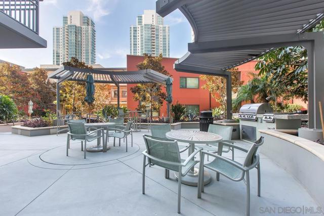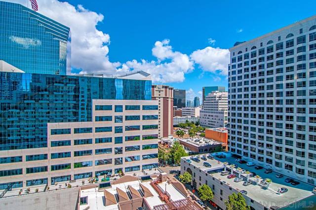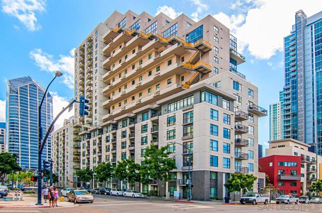 PRICED FOR A QUICK SALE - RARE over 600 SQUARE FEET PRIVATE DECK with iconic city views. An extraordinary opportunity to own a condo with an expansive 600 plus square foot private deck - large enough to comfortably entertain 20 guests nearly doubling your living space. This exceptional outdoor retreat offers sweeping city views, beautiful sunlight throughout the day, and ample room to create a custom outdoor oasis. The 10th Floor of Treo is also unique with only 4 other units making this home very tranquil. Ideally situated on the iconic India Street in the heart of the Columbia District, this home provides effortless access to the Coaster and train station, along with vibrant dining, waterfront paths, and city conveniences just moments away from the new Whole Foods. Inside the residence is light, bright, and thoughtfully designed with an excellent floor plan tailored for entertaining. Highlights include hardwood floors, stacked stone fireplace, and an open concept kitchen that flows seamlessly into the living area. A full size washer/dryer add everyday convenience. The Treo building is known for its low HOA fees while still offering an impressive suite of amenities; 24 hour security, underground private parking, a resort style pool and jacuzzi, a fully equipped gym, and dedicated bike and storage options - perfect for an active, urban lifestyle. Homes with this level of private outdoor space, location and amenities rarely come to the market.