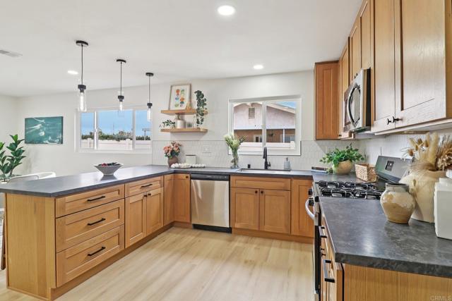 Fully remodeled single-story home in the heart of Clairemont! Turnkey and extensively remodeled, this beautifully updated home offers 4 bedrooms, 2 bathrooms, and quality upgrades throughout. Designed with both style and functionality in mind, the home features brand-new luxury vinyl plank flooring, a bright and open living space, and beautifully remodeled bathrooms with clean, modern finishes. The kitchen has been refreshed with all new appliances, creating a welcoming space ideal for everyday living and entertaining. Major improvements include a new roof, all new windows, new water heater, and new flooring throughout, providing comfort and peace of mind for years to come. The exterior has been thoughtfully upgraded with new landscaping and sprinkler system in the front yard, while the backyard features low-maintenance turf, offering an inviting outdoor space perfect for relaxing, entertaining, or enjoying San Diego’s year-round climate. Ideally located in charming Clairemont Mesa, this home offers convenient access to nearby parks, shopping, dining, major freeways, and San Diego’s beautiful beaches!