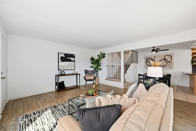 Welcome to 10219 Kerrigan St, a beautifully recently remodeled 3-bedroom, 2.5-bath end unit townhome offering 1,268 sq ft of comfortable living in the heart of Santee. This two-story home features tile and new vinyl flooring on the main level, plush new carpet upstairs, central heat and air, and a convenient downstairs half bath for guests. The functional layout includes in-home laundry and an assigned two-car garage with ample storage. Upstairs, the primary suite opens to a private balcony with scenic foothill views—perfect for morning coffee or winding down at sunset. Enjoy an expansive private patio ideal for entertaining or relaxing outdoors. The well-maintained community offers two pools, playgrounds, and lush greenbelt areas. Located near Santee Lakes, Mission Trails, shopping at Trolley Square, and with easy access to Highways 52 and 125, this move-in ready home offers comfort, convenience, and the best of the Santee lifestyle.