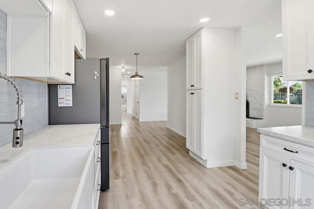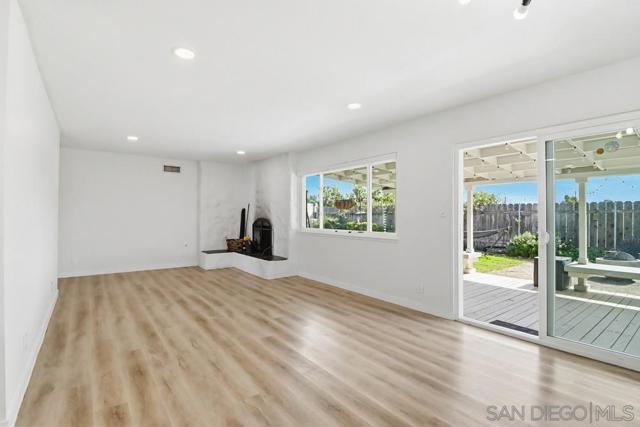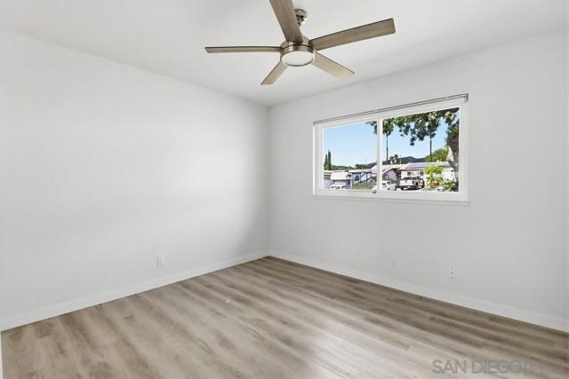 Welcome home! Beautifully upgraded on a quiet cul-de-sac! This fully updated 3-bedroom, 2-bath home features vinyl windows, central A/C and heat, Marsala quartz countertops, custom tile backsplash, stainless steel appliances, and a ceramic apron-front sink. The spacious primary suite includes a walk-in closet and a spa-like bathroom that feels like a luxury retreat. Enjoy indoor-outdoor living with sliding doors leading to a private backyard oasis featuring lush grass, a large covered patio, cozy fire pit lounge with string lights, and a gas line ready for your BBQ. Fantastic location close to parks, schools, and major commuting routes, including Woodglen Vista Park and Santana High School.
