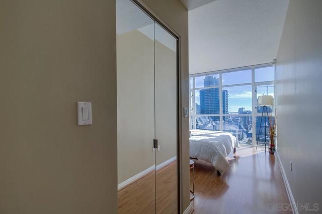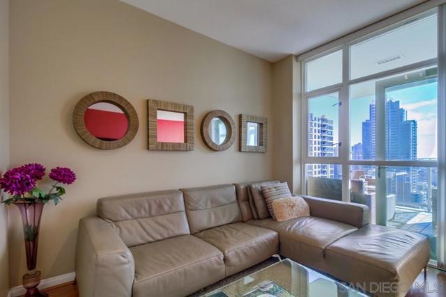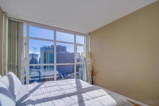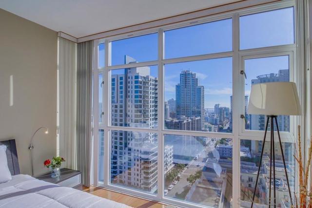 Stunning views from this beautiful and furnished 16th-floor residence in the desirable and quiet location of Downtown San Diego. Located in the prime Discovery building in Cortez Hills, this unit features abundant natural light, an open floor plan, and several large windows to enjoy stunning views of the mountains, bay, and city. The spacious master bedroom features a dramatic glass wall from floor to ceiling with breathtaking views, a walk-in closet, and a large bathroom with a separate tub and walk-in shower. Special features come with this unit, such as a pantry off the kitchen, cozy fireplace in the living room, side-by-side washer/dryer, and amazing sunrise views most times of the year. This exceptional condo is located in the sought-after Cortez Hills neighborhood, offering a prime position with southern exposure and panoramic views of the mountains, Coronado Bridge, and the western skyline. The expansive floor plan offers abundant natural light and features a well-appointed kitchen with ample cabinets and a pantry, a cozy fireplace, and a large balcony ideal for taking in the sunrise and sunset. With a prime position near the elevator, this unit enjoys a refreshing cool breeze. Included are 1 parking space and additional storage. The Discovery building provides exceptional amenities, including a 24/7 concierge, a lap pool on the 10th floor with unparalleled views, a spa, BBQ area, cabanas, gym, sauna, business center, and a tropical courtyard.