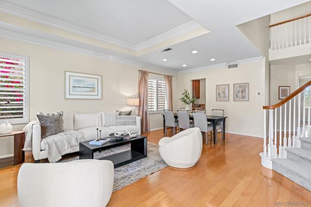 Perched on a peaceful hilltop in one of Scripps Ranch’s most sought-after neighborhoods, this beautifully maintained home offers breathtaking sunset views and refreshing coastal breezes all summer long—often eliminating the need for air conditioning. From the backyard, enjoy glowing evening skies and distant horizon views stretching toward Del Mar and La Jolla. The backyard and upstairs windows experience stunning West facing sunset views. Perfectly sized and thoughtfully designed, the home offers an ideal balance of space and comfort. The expanded family room provides a warm and inviting gathering space—larger than most—making it perfect for both entertaining and everyday living. A spacious kitchen and well-sized bedrooms enhance the home’s livability, while elegant molding details add timeless character throughout. Built by a highly respected builder known for quality craftsmanship and durable materials, this home has been meticulously cared for and remains exceptionally solid and well maintained. The beautifully landscaped backyard is designed as a serene outdoor retreat, featuring colorful, curated plantings that create a peaceful and polished setting for relaxing or entertaining. A large two-car garage provides ample storage and flexibility. Conveniently located near major freeways for easy commuting, yet tucked within a quiet, friendly community served by top-rated 10/10 schools. A home that has been truly cherished—offering comfort, quality, and unforgettable views. A rare opportunity to own a hilltop retreat in the heart of Scripps Ranch.