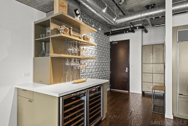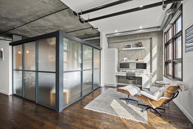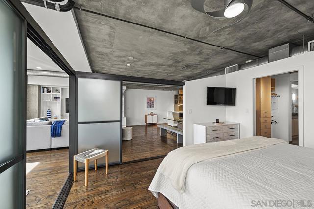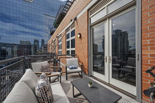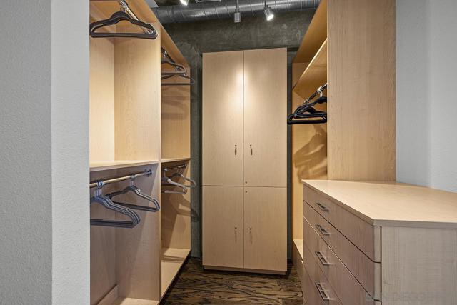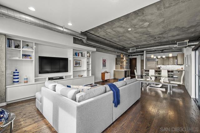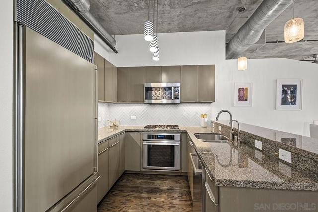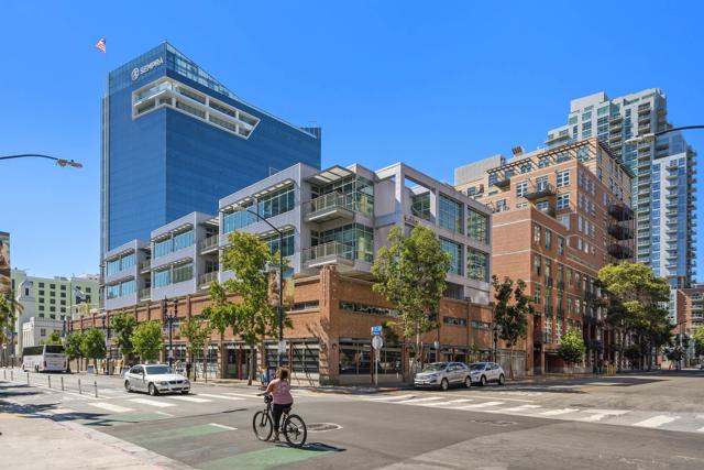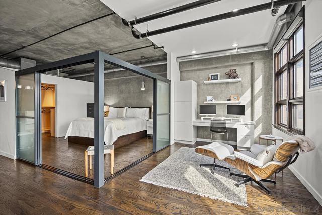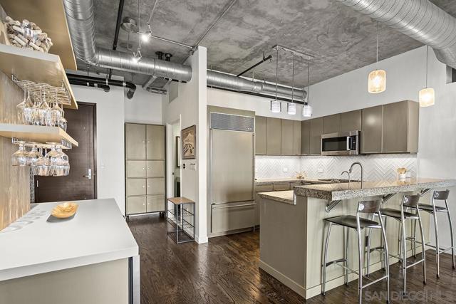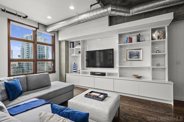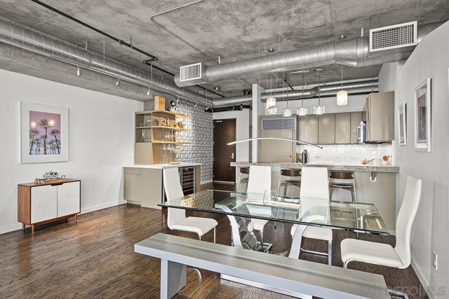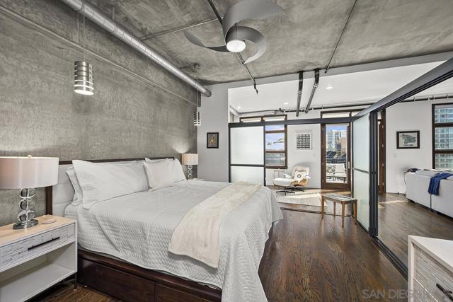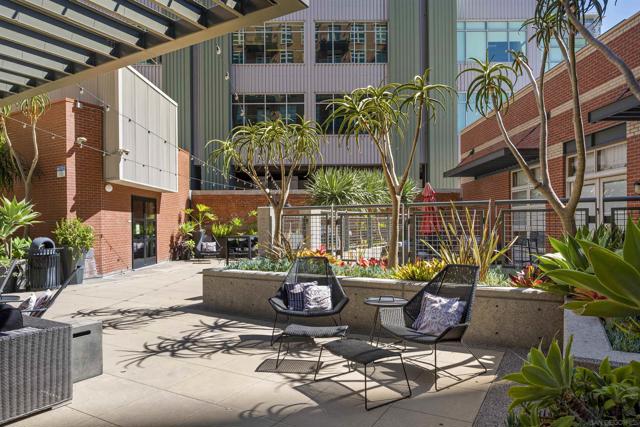 Stunning views of Petco Park grace every window in this chic one-bedroom, one-and-a-half-bathroom condo. It also benefits from 14ft vaulted ceilings that infuse the space with an open, airy vibe. Rental rate is for a minimum 6-month lease. Entertaining is easy here, and not just because of the in-unit viewpoint of Padres games, concerts and events, this space boasts a dining table with seating for six next to a built-in dry bar fully stocked with all the necessary tools and glassware, complete with a wine fridge. Alternate seating at the kitchen counter, and an oversized sofa in the living room in front of a sizeable Smart TV, add to the entertainment appeal in the stylish space. The plush L-shape sofa also doubles as a queen-size sleeper sofa, ideal for overnight guests who will also appreciate the nearby powder bathroom. The expansive bedroom suite features frosted sliding panels that can be positioned for complete privacy or left open to turn the condo into one large, open concept space. Within, the suite boasts a luxurious king-size bed, Smart TV, walk-in closet with abundant storage space, and a roomy bathroom with a dual sink vanity and an ultra-spacious walk-in shower. Those looking to work from home will love the office nook equipped with a large desk housing two computer monitors and benefiting from ample natural light from nearby floor-to-ceiling French doors. This condo is located within the Park Loft building in the heart of East Village. Park Loft is located across from Petco Park, home of Major Legue Baseball’s San Diego Padres, and host to everything from baseball games to concerts to special events. This locale puts it in close proximity to a multitude of tasty spots to grab a bite and brew, and shopping opportunities galore. The nearby Harbor Drive Pedestrian Bridge also provides easy access to the San Diego Convention Center, Seaport Village, The Embarcadero, and all that they have to offer. Amenities in this building include secure underground parking, contemporary lobby with concierge, and 24-hour security with surveillance cameras. It also offers an updated fitness center, lush central courtyard with abundant greenery throughout featuring multiple seating areas, fire pits, community grilling stations and a chic clubhouse with a full kitchen, large Smart TV and abundant seating.