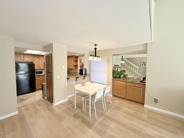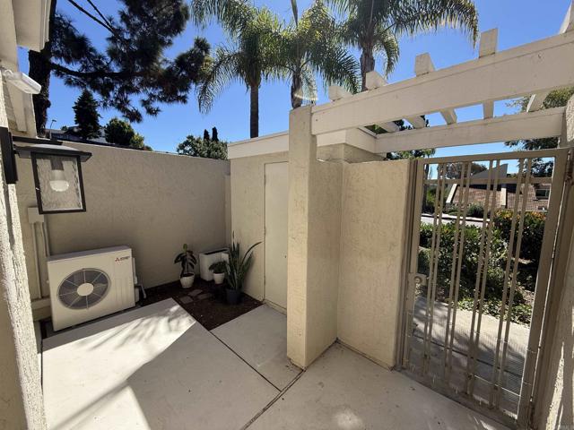 Welcome to this very desirable, ready to move in, 914 sq ft two story end unit offers privacy and a spacious floor plan in The Villas at University Park located in the University City. The complex is close to UCSD and public transportation which is ideal for UCSD college students. The floorplan has vaulted ceilings upstairs and downstairs giving the unit an open and spacious feeling. This unit is on the corner, so it has extra windows and light. It has been upgraded with a city permitted air conditioning system. The kitchen has beautiful maple cabinets; granite countertops and the washer and dryer are inside of unit in an oversized downstairs bathroom. The upstairs bedroom has its own full bath and a large walk-in closet. The front entry has an oversized coat closet, and the patio has a built-in storage shed. The stunning modern Spanish architecture is accented by trellises and tile roofs and surrounded by tropical palms and flowers that grace and canopy the winding paths and walkways. Beautiful community pool and spa, large clubhouse with gym, billiards, sunken fire pit lounge & party facilities. Ideally located close to shops & restaurants at Westfield UTC Mall, beaches of La Jolla, UCSD, hospitals and business parks, close to freeways. Don't miss out on the opportunity to own this gem!