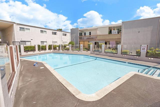 Bright and inviting condo in a gated community conveniently located near the pool area and community laundry room. This home features an open floor plan with sliding door access to a private front patio, abundant natural light in both bedrooms, fresh paint, white shutters, and an upgraded hallway bathroom. The spacious primary bedroom offers two closet areas, plus additional hallway storage and two full bathrooms. Enjoy the community BBQ area, low HOA fees, no Mello-Roos, and a prime location near 3rd Avenue shops, dining, and easy access to the 805 and 5 freeways.