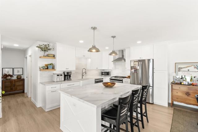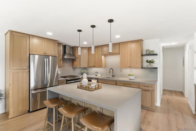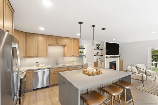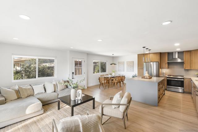 In the coveted Beach-Barber Tract of La Jolla, this extensively remodeled duplex presents a rare opportunity to own a turnkey property moments from The Village and beaches. Each residence includes 2 bedrooms, 1.5 bathrooms, and 999 square feet of light-filled living space with an open-concept layout designed for modern living. Newly appointed kitchens feature quartz countertops with waterfall islands, custom wood cabinetry, and new appliances. Bathrooms showcase Bedrosians tile and contemporary fixtures, while luxury vinyl plank flooring runs throughout, creating a warm and inviting interior. Glass doors from the living room and primary bedroom open to private, beautifully landscaped yards with patios and lawn areas for each unit, offering seamless indoor-outdoor flow for entertaining and everyday enjoyment. Recent improvements include a new roof, new electrical, new fixtures, and refreshed landscaping, adding to the overall appeal. Each home also has its own one-car garage with laundry. Ideally located near Village shops and restaurants, the Farmers Market, and the Pacific Ocean, the property offers exceptional flexibility for investment, owner-occupancy, or multigenerational living in this sought-after coastal neighborhood.