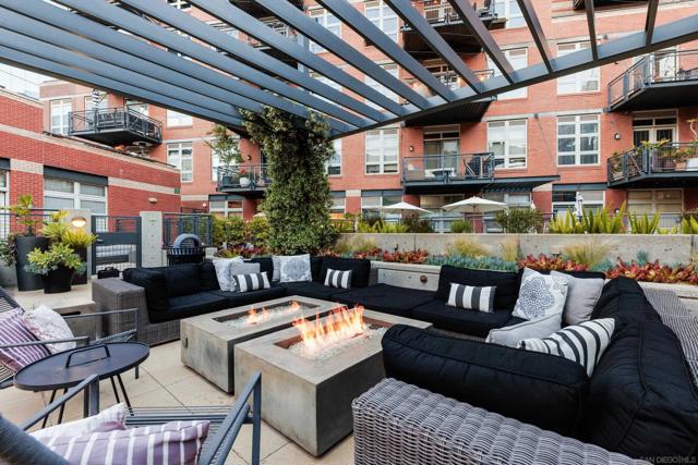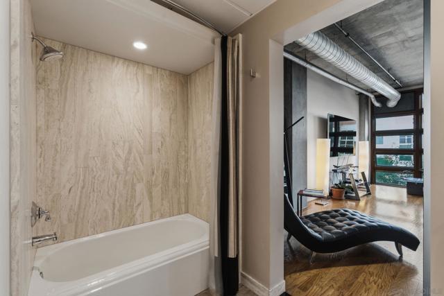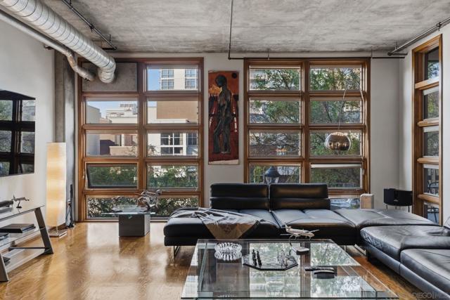 Experience elevated loft living at Parkloft, one of Downtown San Diego’s most coveted addresses in the vibrant Ballpark District. This spacious residence features soaring 10-foot ceilings, exposed ductwork, solid oak flooring and an open-concept design which captures the essence of sophisticated urban living. The expansive floor to ceiling Pella windows open up to north-facing city views and the private terrace is equipped with gas hookups, perfect for alfresco dining and entertaining. The primary retreat offers a tranquil escape, featuring an attached spa-inspired bathroom with award-winning design showcased in SD Design Magazine. Parkloft residents enjoy a well appointed fitness center; 24-hour concierge and security services; on-site management ensuring exceptional care and convenience; and a serene landscaped courtyard with ambient fire features, BBQ’s and a club house with a kitchenette which opens up to a large outdoor dining table and sets the stage for effortless outdoor entertaining. Developed by Douglas Wilson Companies (developer of Symphony Towers), Parkloft embodies the timeless sophistication of Manhattan-style loft living, with a seamless balance of historic brick craftsmanship and modern elegance. Crafted of poured-in-place concrete and timeless brick, this 11-story boutique building features a limited collection of 120 residences. The Ballpark District spans 22 blocks surrounding Petco Park, where the Padres-affiliated Ballpark District Community Partnership provides daily clean-up services to maintain the area.