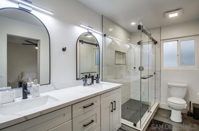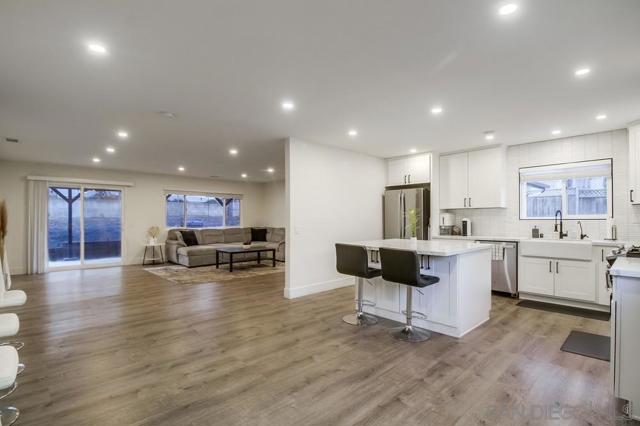 A beautiful gem of a home tucked away in the heart of Lemon Grove. The home was remodeled just 2 years ago and is move in ready. The luxury kitchen is an entertainers delight with island seating and also overlooking the dining area. Step out of the large living room to your private, covered patio. Primary bedroom boasts an ensuite bathroom with duel sinks and walk in shower. Hidden at the back of the home is an extensive patio area currently being used for basketball. There is development opportunity to add a 1100sqft ADU. Plenty of parking for either an RV or or a boat