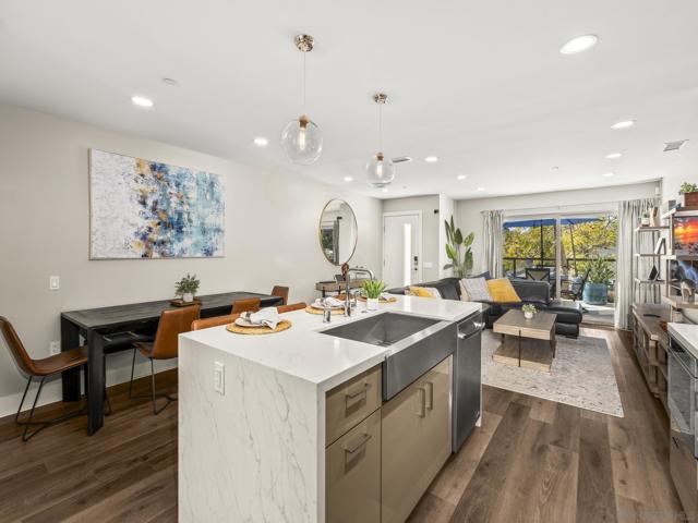 Experience modern coastal elegance in the heart of Point Loma with this exceptional 3-bedroom, 3.5-bath townhome. This property perfectly combines style, functionality, and a prime location. Designed for comfort, the home features a gourmet kitchen on the main level equipped with Jenn-Air appliances, quartz countertops, and an open-concept layout filled with natural light and soaring ceilings. Enjoy seamless indoor-outdoor living with a spacious private patio ideal for entertaining, plus a rooftop deck offering panoramic views of the bay, city, and hills. The luxurious primary suite boasts a walk-in closet, a private balcony, and a spa-inspired bathroom. Additional highlights include two secure garage parking spaces, EV-ready parking spaces, and gated storage in a charming 15-unit boutique community. Conveniently situated near Shelter Island, Liberty Station, beaches, dining, shopping, and the airport, this home truly embodies the best of coastal San Diego living.