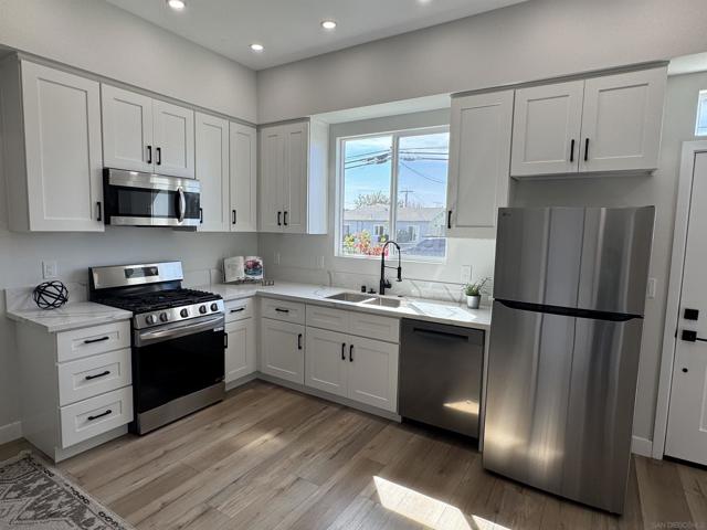 Two homes in one—built in 2022 and offering a fully permitted attached ADU for flexible living or income potential. The main residence is 4 bedrooms, 3 bathrooms, and approximately 1,914 sq. ft., paired with an attached 2 bedroom, 1 bath ADU of approximately 600 sq. ft., for a combined total of roughly 2,500+ sq. ft. The main home features a well-designed two-story layout with two ensuite bedrooms upstairs, including a primary suite with a walk-in closet, and two additional bedrooms with a full bath on the main level—ideal for guests or single-level living. The open great room connects the kitchen, dining, and living areas, creating a bright and functional space. An attached two-car garage and additional driveway parking add convenience. The attached ADU is single-level with its own private entrance, yard, and in-unit laundry, offering excellent separation and usability. 2 beds 1 bath and nearly 600 sq feet. Each unit has its own private outdoor space with low maintenance artificial turf and beautiful landscaping. Both units were built new in @ 2022 and include high ceilings, abundant natural light, full appliance packages, and private fenced outdoor spaces with low-maintenance turf and landscaping. Located near the beach in Imperial Beach, this turnkey property offers modern construction and outstanding versatility. 2 units... Main house and ADU built in 2022. Beautiful homes!