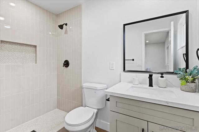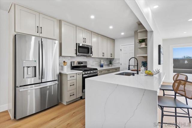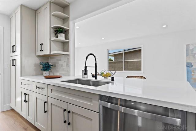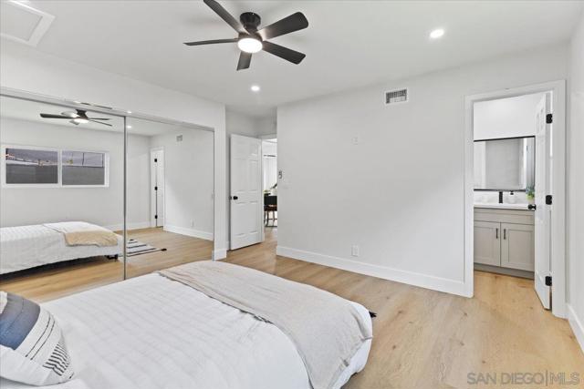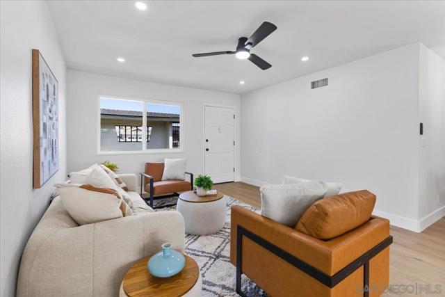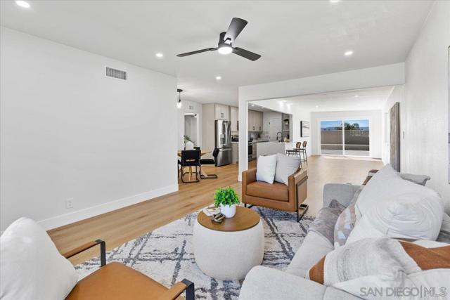 This beautifully reimagined single-level residence offers approximately 1,744 square feet of thoughtfully designed living space, featuring 3 bedrooms, 2 bathrooms, and an attached two-car garage, all set on a generous 5,800 square foot lot. Recently remodeled with a refined designer aesthetic, the home showcases a stunning chef-inspired kitchen with custom cabinetry, quartz countertops, a dramatic waterfall island, and an elegant tile backsplash. The beautifully upgraded bathrooms feature designer tile surrounds and sleek glass enclosures, while additional highlights include luxury vinyl plank flooring, recessed lighting, dual-pane windows, ceiling fans, mirrored wardrobe doors, and a bright, open-concept floor plan designed for modern living and effortless entertaining. Extensively upgraded inside and out, the home reflects a comprehensive renovation focused on quality, efficiency, and lasting appeal. Exterior improvements include a new roof with updated sheathing and fascia, fresh paint, new windows and sliders, low-maintenance synthetic turf, and a new garage door with motor. Inside, thoughtful upgrades include new plumbing throughout, a brand-new relocated water heater, updated electrical with a new 125-amp panel, recessed lighting, and modern fixtures. Comfort is enhanced with a new furnace, improved ducting, and upgraded insulation in both the attic and garage. Additional enhancements include new interior texture and paint, upgraded flooring with underlayment, new baseboards, doors, and hardware, along with fully remodeled kitchen and baths. Ideally situated near shopping, dining, neighborhood parks, and with convenient access to the 5, 805, and 905 freeways, this home offers a seamless blend of elevated style, comfort, and everyday living!