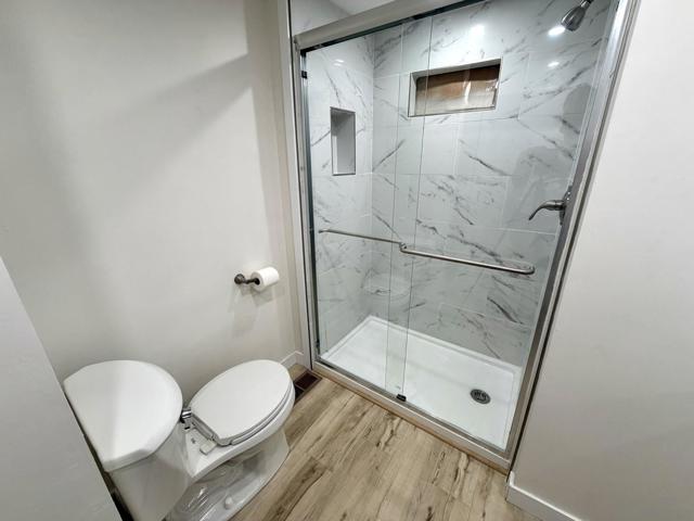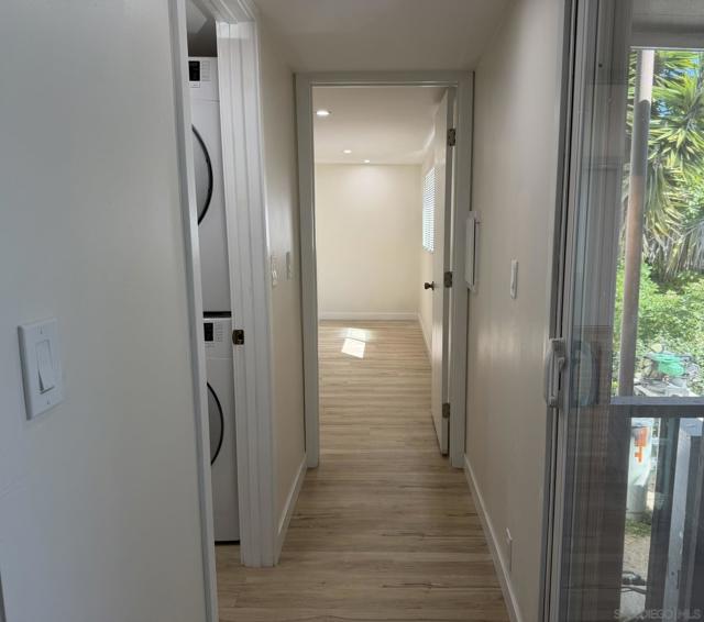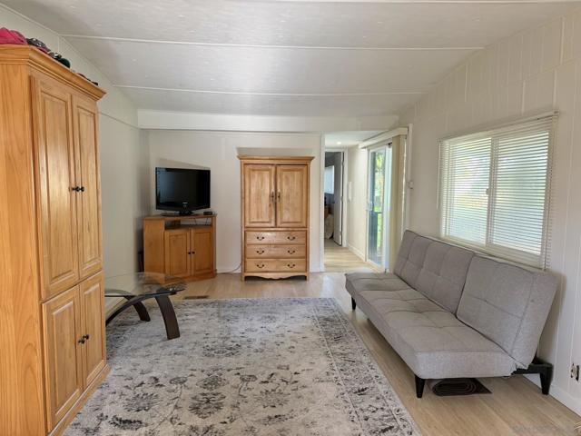 Fully remodeled 2-bedroom, 1 bathroom manufactured home centrally located in the heart of San Diego. This move-in ready home is part of an all ages, pet-friendly community park that features multiple swimming pools and a clubhouse. The home has been completely renovated and includes new vinyl flooring, new drywall, recessed lighting, and has been freshly painted in both the interior & exterior. The kitchen includes refinished and freshly painted cabinets, butcher block countertops, and a new sink, refrigerator and dishwasher. New roof in 2022. Stacked laundry is located inside the refinished bathroom. Covered carport driveway can fit 2 cars. Tool/storage shed in backyard for added convenience. Centrally located within 25 minutes to the beach and airport. Come check it out today!