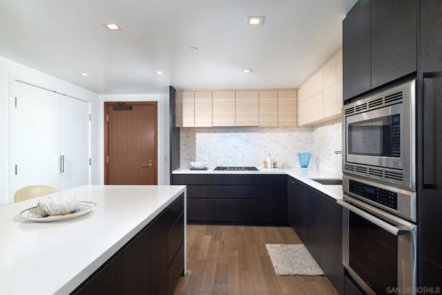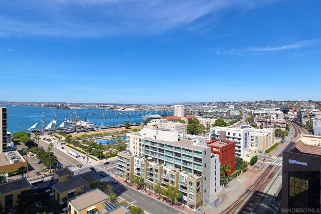 Welcome to one of the best addresses in Downtown San Diego! This exceptional west-facing “09” residence offers beautiful San Diego Bay views and an abundance of natural light. The home features custom blinds, engineered hardwood flooring, recessed lighting throughout, and upgraded California Closets for optimal storage. Finished in the highly sought-after Urban scheme, the interior blends modern style with comfort and functionality. Ideally located just moments from the San Diego Bay and the vibrant shops and restaurants of Little Italy. Residents enjoy resort-style amenities including pool, spa, sauna, steam room, state-of-the-art fitness center, yoga deck, community lounge, concierge, BBQ areas, pet retreat with washing station, bike tune-up station, and more. Luxury living at its finest in the heart of downtown. Welcome to one of the best addresses in Downtown San Diego! This exceptional west-facing “09” residence offers beautiful San Diego Bay views and an abundance of natural light. The home features custom blinds, engineered hardwood flooring, recessed lighting throughout, and upgraded California Closets for optimal storage. Finished in the highly sought-after Urban scheme, the interior blends modern style with comfort and functionality. Ideally located just moments from the San Diego Bay and the vibrant shops and restaurants of Little Italy. Residents enjoy resort-style amenities including pool, spa, sauna, steam room, state-of-the-art fitness center, yoga deck, community lounge, concierge, BBQ areas, pet retreat with washing station, bike tune-up station, and more. Luxury living at its finest in the heart of downtown.