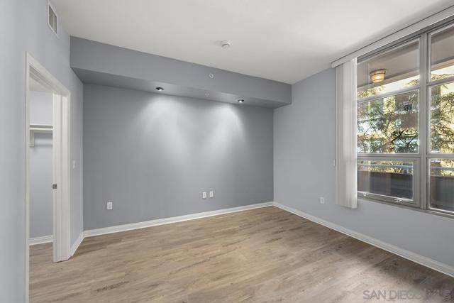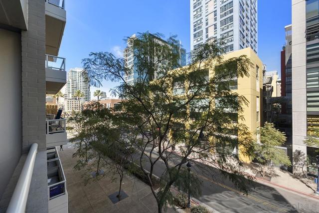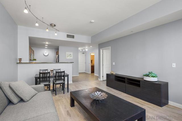 Light, space, and style define this bright and open Park Terrace residence. Oversized windows fill the living and dining area with natural light, nicely complemented by sleek track lighting and warm luxury vinyl plank flooring throughout. Step outside onto your private balcony and take in a lush, tree-lined streetscape framed by the Downtown skyline with the iconic San Diego Central Library dome as your backdrop and peek views toward Petco Park. The open-concept layout flows from the living room to a well-appointed kitchen featuring granite countertops, stainless appliances, and recessed lighting. The bedroom offers a spacious walk-in closet, and a full bath with shower/tub combo keeps things practical. An oversized dedicated parking and north-facing exposure (keeping the unit cool and comfortable year-round) seal the deal. Steps from the Gaslamp Quarter, Petco Park, and the waterfront, this is Downtown San Diego living done right Park Terrace puts you in the heart of East Village, just steps from Petco Park and the lively Gallagher Square. Surrounded by local favorites like Lestat’s on Park for coffee, Café Chloe for French-inspired dining, and Parkhouse Eatery for brunch, residents enjoy a walkable lifestyle filled with trendy cafés, restaurants, and nightlife. With ballgames, concerts, and community events right outside your door, Park Terrace offers truly prime Downtown living. Residents of Park Terrace enjoy amenities such as a well-equipped fitness center, recreation room with pool table, and an inviting community courtyard complete with lounge areas and barbecues, perfect for gatherings with friends and neighbors.