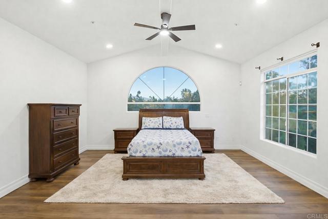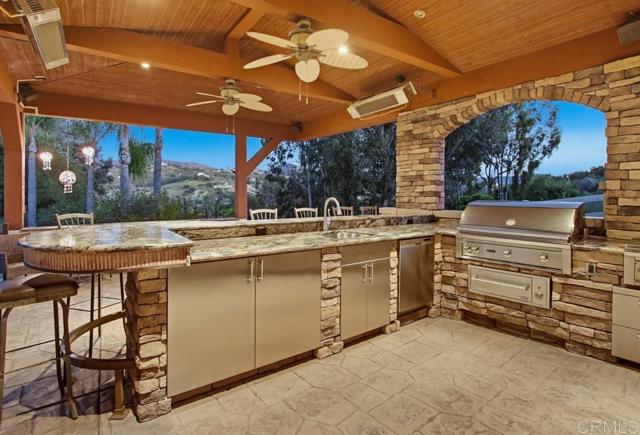 Welcome to one of Blossom Valley's most iconic estates — a beautifully designed, built, and meticulously maintained 6-bedroom, 6-bathroom masterpiece spanning 5,362 sq ft on a private, gated 2-acre lot. Every detail of this home reflects quality and intentionality, from the high-end finishes throughout to the thoughtfully curated amenities inside and out. The heart of the home is a newly upgraded gourmet kitchen featuring a Sub-Zero refrigerator and refrigerator drawers, Dacor ovens, Bosch dishwasher, quartz countertops, a large island, self-closing cabinetry, and a built-in trash/recycling system — all open to the family room for effortless entertaining. Each bedroom enjoys its own full en-suite bath, while an upstairs game room and study area offer ideal space for work and play. The primary suite is nothing short of extraordinary — a private balcony with stunning views and an above-ground spa, a two-way fireplace in the luxurious bath, dual vanities, soaking tub, dual showers, and a walk-in closet that truly has to be seen to be believed. Outside, the estate continues to impress. The sport court is lit for night play, and the outdoor kitchen is outfitted with Lynx appliances — grill, cooktop, ice maker, and dishwasher — plus a walk-in pantry perfect for entertaining. Covered RV parking accommodates a full-size motorhome and a 28-foot boat. The expansive 4-car garage features a handyman's dream workshop, dual EV charging stations, and abundant storage. A separate ADU/office provides the perfect flex space for guests, a home business, or multigenerational living. Owned solar panels keep energy costs in check. Behind the automatic security gate, this estate delivers a rare combination of seclusion, luxury, and functionality — just minutes from I-8 and all of San Diego's best.