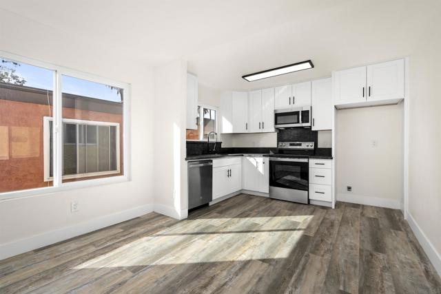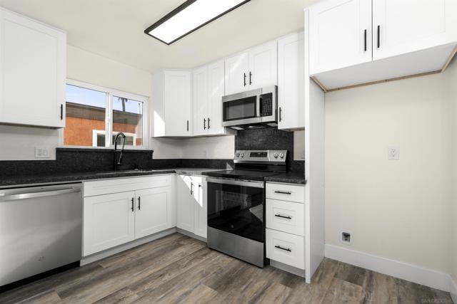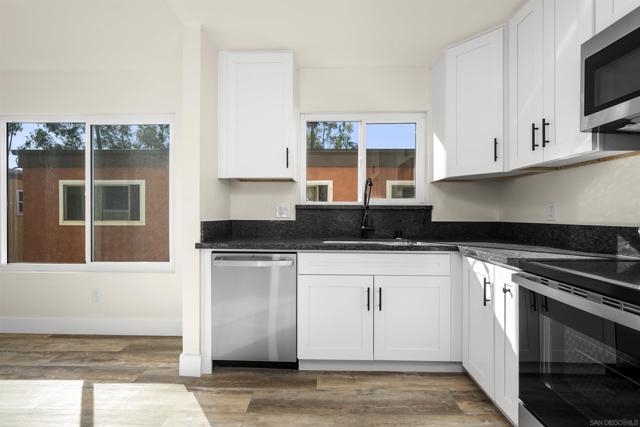 Updated 2BR/1BA condo in gated community featuring wood-style flooring, remodeled kitchen with white shaker cabinets, black counters, and stainless steel appliances, plus updated bath. Community pool, lounge area, and on-site laundry. Convenient San Diego location near shopping, dining, schools, and freeways. Move-in ready and ideal for owner-occupants or investors.