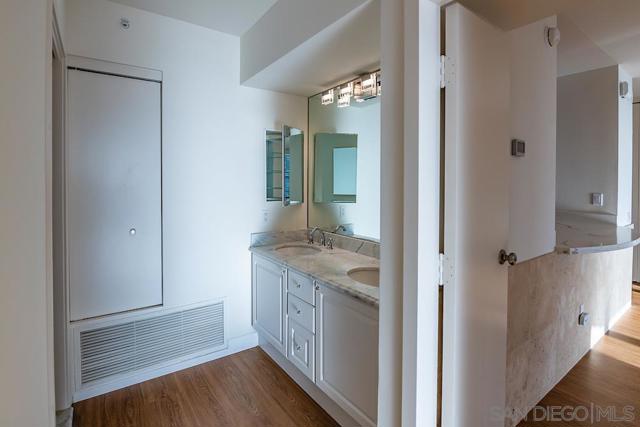 Luxury Marina District condo for lease! Split-bedroom layout with sunset views over San Diego Bay. Entire home updated with new wood laminate flooring, stainless steel appliances, washer/dryer, custom lighting, with quartz and marble finishes throughout. Spacious balcony for relaxing or entertaining. CityFront Terrace is located minutes to Ralphs grocery, famous Seaport Village, dining and entertainment in the Gaslamp Quarter. Building features valet parking, doorman, 24/7 security, 3,500 SF gym, two pools, spa, sauna, BBQs, and clubhouse. Enjoy endless walking trails and areas to explore.