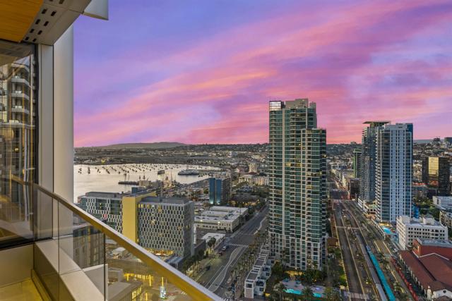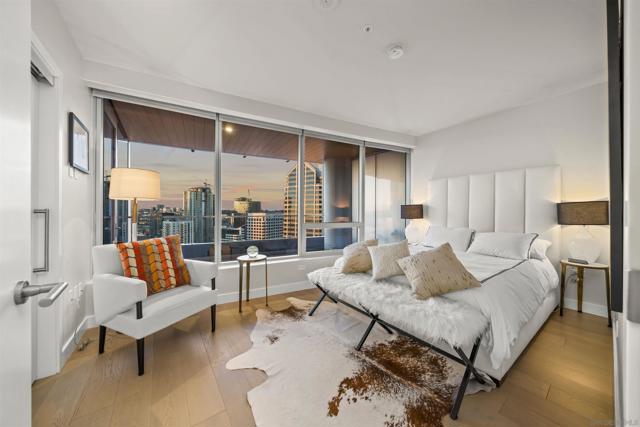 Experience elevated living at Pacific Gate in this fully furnished 30th-floor residence offering breathtaking city skyline and bay views. This 2-bedroom, 2-bathroom home features a spacious and thoughtfully designed layout with floor-to-ceiling windows, a private balcony, and power shades throughout. The primary suite includes a large walk-in closet and a spa-inspired bathroom with both a soaking tub, a separate shower and heated floors. The residence comes fully equipped, including furniture, kitchenware, plates, and glassware, providing a true turnkey living experience. Two assigned parking spaces are included. Pacific Gate offers world-class amenities including a pool, spa, steam and sauna, state-of-the-art fitness center, private movie theater, business center, conference room, and a dedicated dog relief area. Residents also enjoy concierge and security services, access to a fleet of four luxury vehicles, and the unique benefit of reserving the building’s private yacht at a preferred rate. A rare opportunity to lease a fully furnished residence in one of San Diego’s most iconic luxury towers.