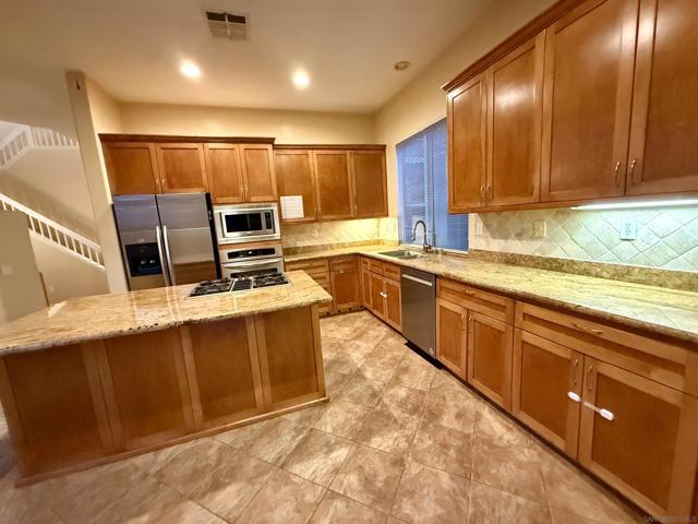 Beautiful Scripps/La Merida perfectly situated on a flat, end CUL DE SAC street! High vaulted ceilings. Modern Granite Kitchen With Center Island. Lots of cabinets, Granite counter tops. All Stainless Steel Appliances package. Gorgeous kitchen remodel with custom cabinetry, granite counters, stainless steel appliances and tile flooring. Floor plan offers 3 bedrooms plus loft(Large Bonus Room without closet) upstairs. spacious living & dining areas & indoor laundry with washer & dryer. Dining room has added built in shelving and wine racks. Neutral decor throughout. Lovely, private back yard with patio and lawn areas. Minutes to Schools, malls, hwy, Starbucks, restaurants. Quiet end of cul de sac charmer.$4650 rent & $4650 deposit with good credit moves you in.MUST SEE HOME! MUST SEE END UNIT CHARMING HOME BY QUIET CUL-DE-SAC IN DESIRABLE SCRIPPS/LA MERIDA. TRAVERTINE TILE ENTRY/BATH, VAULTED CEILINGS, GRANITE KITCHEN COUNTERS WITH TUMBLED TRAVERTINE BACKSPLASH, LARGE CENTER ISLAND IN KITCHEN, UPGRADED KITCHEN FLOOR TILE, UPGRADED CARPET, DESIGNER PAINT, 2-INCH WOOD BLINDS & RECESSED LIGHTING THROUGHOUT, LARGE LOFT(AS 4th BEDROOM BUT NO CLOSET) WITH PLANTATION SHUTTERS, MASTER HAS HIS & HER WALK-IN CLOSETS AND NEW SHOWER ENCLOSURE, CEILING FANS IN FAMILY ROOM AND MASTER BEDROOM, BEAUTIFUL LANDSCAPING WITH BLOOMING COLORS AND LARGE PRIVATE PATIO. PREFER 13 MONTHS LEASE.TENANTS PAY WATER/ELECTRICITY/GAS.GOOD CREDIT NEEDED.HIGHLY RATED SCRIPPS RANCH SCHOOLS.
