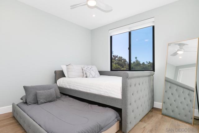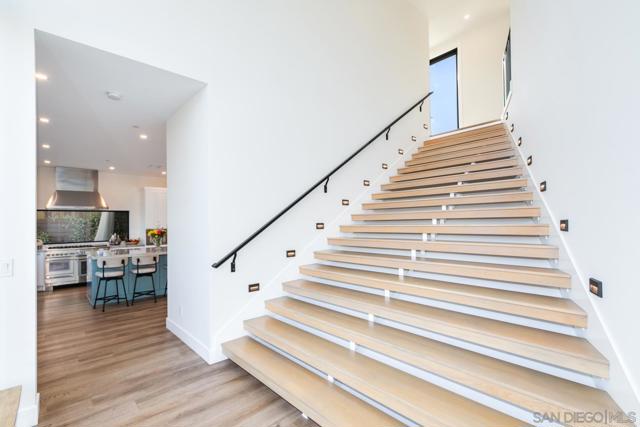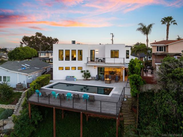 Experience elevated coastal living in this exceptional, 5-bedroom, 4.5-bath, 3,269 sqft home located in the highly coveted Loma Portal neighborhood of Point Loma. Take advantage of a rare opportunity to assume a 2.8% VA loan! Unlock additional income potential with the first-floor ensuite conversion into a separate ADU or in-law suite. Currently operating as a top-performing short-term rental generating $270K+ annually, this property has projected upside exceeding $300K+ through strategic amenity enhancements. Designed for luxury living through high-performance rental income, the home features an open-concept layout anchored by a grand staircase, a chef’s kitchen with premium stainless steel appliances and a built-in Thermador espresso system, and fully integrated motorized blinds. Fleetwood floor-to-ceiling glass systems define the home, featuring a dramatic oversized pivot front entry and dual rear pocketing glass walls that fully retract to create seamless indoor-outdoor living. The private outdoor retreat includes a heated saltwater pool, recessed ceiling-mounted patio heaters, and multiple lounge and dining areas. Convert the expansive lower yard space for a mini pickleball court, further enhancing guest appeal and revenue potential. Energy-efficient features include solar panels integrated with a TPO roofing system and a 220V EV charging outlet in the attached two-car garage. Situated on a quiet cul-de-sac with views of SeaWorld fireworks, this home is just minutes from Liberty Station, Sunset Cliffs, San Diego’s iconic beaches, waterfront dining, and downtown.