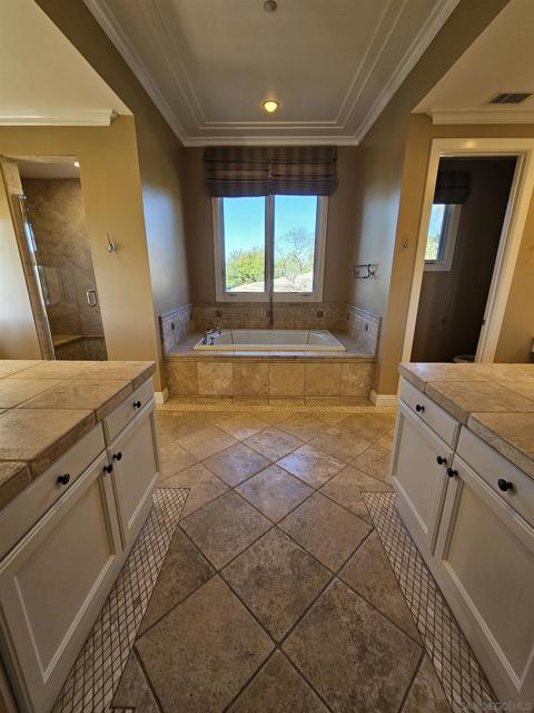 Refined luxury living with panoramic ocean views and fantastic sunsets. Beautifully appointed single level luxury home for lease in the guard-gated community of Santaluz. This residence offers 5 bedrooms and 5.5 baths on a hilltop 2.13 acre lot with unobstructed ocean vistas. The home features an open-concept interior courtyard with warming fire pit, abundant natural light, and seamless indoor–outdoor flow. The chef’s kitchen includes premium appliances, custom cabinetry, and an oversized island. The spacious primary suite provides a spa-inspired bath, soaking tub, walk-in shower, and large custom closet. Additional en-suite bedrooms, an expanded guest room and a guest casita, which can be dedicated office or optional fifth bedroom, offer flexibility and privacy. Outdoor living includes, landscaped grounds and tranquil views of Santaluz’s preserved open space. Community amenities include 24/7 guard-gated security, miles of hiking and biking trails., and optional membership to The Santaluz Club for golf, tennis, fitness, spa, and dining (membership not included).