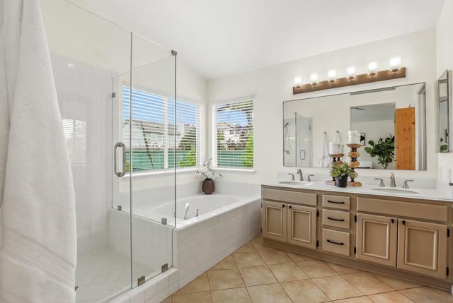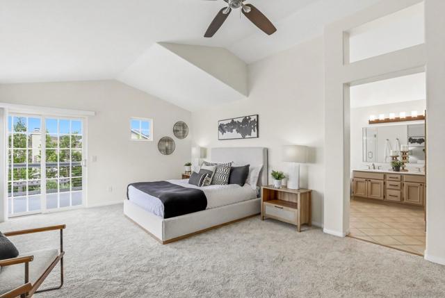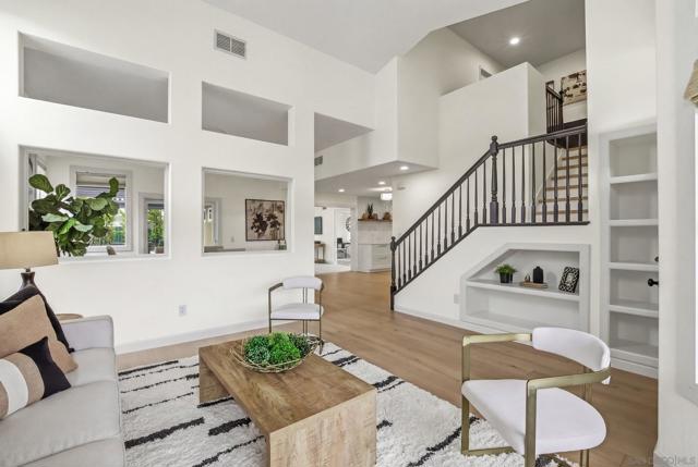 Welcome to 12306 — where soaring ceilings, warm wood inspired floors, and designer finishes create a home that simply feels different the moment you walk in. The fully reimagined kitchen stuns with custom cabinetry, quartz counters, and artisan tile. Gather in the sun-drenched dining room, unwind in the spacious family room, or retreat to the expansive primary suite with its spa-inspired bath and private balcony views. Outside, two pergolas frame a lushly landscaped yard built for Park Villag living at its finest. This is the one you've been waiting for. Home Upgrades: Exterior: Raised redwood garden bed for fruits and vegetables installed in 2022. Backyard completely remodeled for low-water use, designed by Black Mountain Landscape Design, with new concrete, pergola, drip system, lighting and high-value low-water plants including agaves, Pink Ice Proteas, olive trees, and California natives. Mango, orange, lemon, and lime trees. Fern Pines line the property. 2021 - New fence paint. 2021 - Front yard landscaped by homeowners (2017–2022) with California natives; registered as a monarch waystation and certified wildlife habitat. Combination drip and spray irrigation system. Cedar-planked horizontal privacy fence and gate built in 2018. Path lighting installed in 2017. Low water use throughout. Interior: Kitchen & buffet storage fully remodeled 2020, including enlarged casement windows, new window above sink, induction stove/oven, sink, microwave, and vent hood. Features include quartz countertops, new cabinets and drawers, West Elm sconces, CB2 knobs and handles, and customizable IKEA cabinetry. Custom walnut floating shelf and designer backsplash with Zellige tiles imported from Morocco and hand-painted FireClay tiles behind stove. Interior painted with Benjamin Moore in 2019 Pantry upgraded with Elfa shelving system. 2021 Engineered hardwood floors installed upstairs and downstairs 2020; new carpet installed 2026.Tile in bathrooms. New HVAC system 2015. Thoroughly serviced 2024. Nest Thermostat Laundry room updated with new cabinets and vinyl flooring. 2024 All toilets replaced 2025. Primary bath shower stall replaced 2026. Water heater replaced 2026. Flooring: Engineered Hardwood Floor in main downstairs rooms and upstairs hallway; vinyl in laundry room; carpet, tiled bathrooms