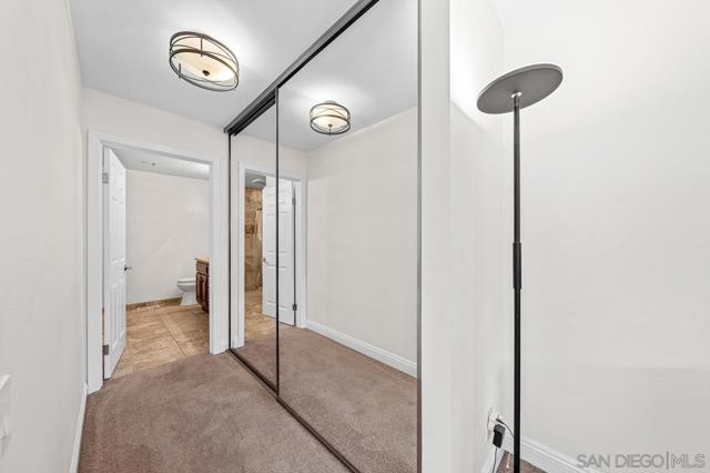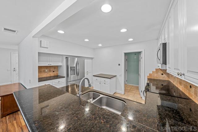 Welcome to this stunning end unit townhome where thoughtful upgrades meet an unbeatable San Diego location. From the moment you step inside, you'll feel the difference. Freshly painted cabinetry, contemporary lighting, and an abundance of natural light from newer windows create a warm, welcoming atmosphere throughout. The open concept living area flows effortlessly from room to room, anchored by a classic fireplace that adds charm and character to your everyday living. The remodeled kitchen is a true standout, featuring gleaming granite countertops, stainless steel appliances, upgraded cabinetry, and a movable island that adapts to your lifestyle, whether you're hosting dinner parties or enjoying a quiet morning coffee. Both bathrooms have been equally transformed with the same high end finishes and attention to detail. Step through elegant French doors to your own private patio, a peaceful outdoor retreat perfectly suited for al fresco dining or simply unwinding after a long day. As an end unit, you'll enjoy the added privacy rarely found in townhome living. Practical comforts abound: a newer furnace keeps you cozy year round, the laundry room off the kitchen offers generous storage, and the attached garage boasts epoxy flooring and a built in workbench. An additional carport space sits just steps from your door, and pull down attic stairs reveal even more storage above. All of this, ideally positioned near trolley lines, Fashion Valley, Old Town, SeaWorld Drive, pristine beaches, major freeways, and the vibrant heart of downtown San Diego.